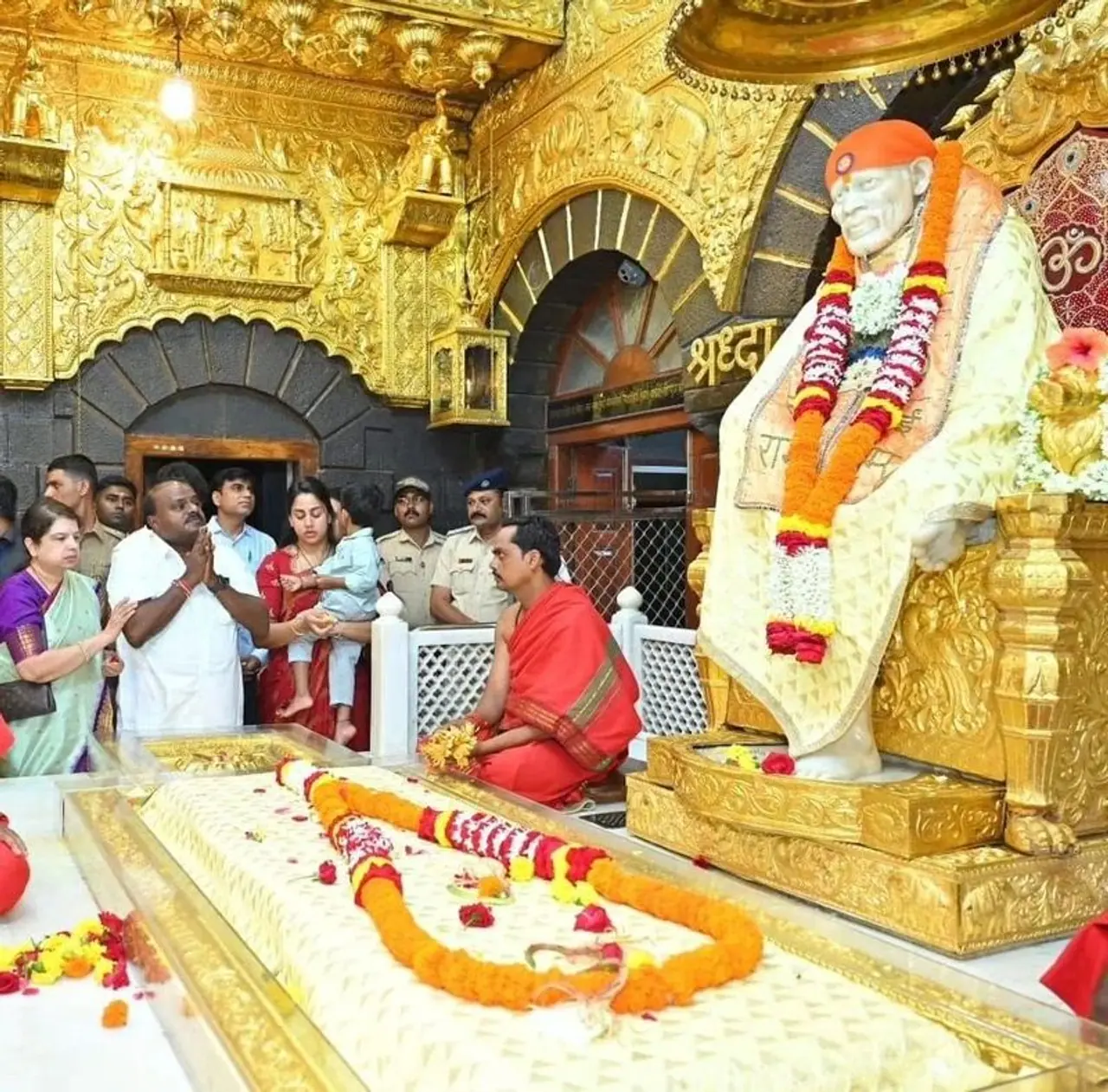 ಸ್ಯಾಂಡಲ್ ವುಡ್ ನಟ ಮತ್ತು ರಾಜಕಾರಣಿಯಾಗಿರುವ ನಿಖಿಲ್ ಕುಮಾರಸ್ವಾಮಿ ತಮ್ಮ ತಂದೆ ಕುಮಾರಸ್ವಾಮಿ, ತಾಯಿ, ಪತ್ನಿ ಮತ್ತು ಪುತ್ರರೊಂದಿಗೆ ಶಿರಡಿ ಸಾಯಿ ಬಾಬ ದರ್ಶನ ಪಡೆದು ಬಂದಿದ್ದಾರೆ.