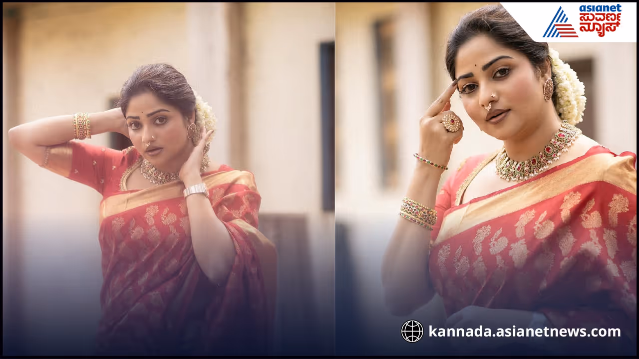 ಹೌದು ರಚಿತಾ ರಾಮ್ ತಮ್ ಇನ್’ಸ್ಟಾಗ್ರಾಂ ಖಾತೆಯನ್ನು ಒಂದಷ್ಟು ಫೋಟೊಗಳನ್ನು ಪೋಸ್ಟ್ ಮಾಡಿದ್ದು, ಅದರಲ್ಲಿ ನಟಿ ಕೆಂಪು ಬಣ್ಣದ ರೇಷ್ಮೆ ಸೀರೆಯುಟ್ಟು, ಅದರ ಜೊತೆಗೆ ಹೆವಿ ಆಭರಣಗಳು, ಮುಡಿ ತುಂಬ ದುಂಡು ಮಲ್ಲಿಗೆ ಮುಡಿದು ಮದುವೆ ಹೆಣ್ಣಿನಂತೆ ಕಾಣಿಸಿಕೊಂಡಿದ್ದಾರೆ.