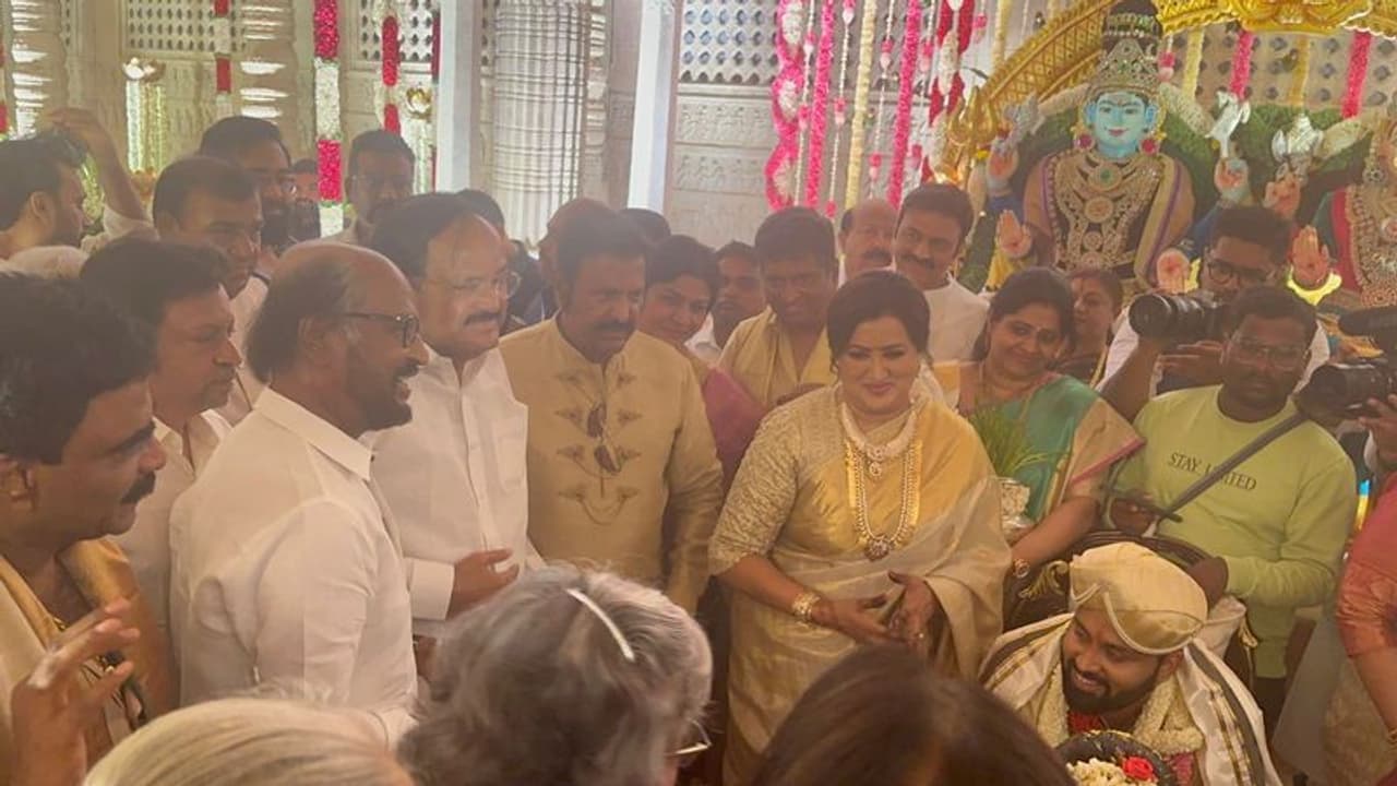 ರೆಬಲ್ ಸ್ಟಾರ್ ಅಂಬರೀಷ್ ಪುತ್ರ ಅಭಿಷೇಕ್ ಅಂಬರೀಷ್ ಮದ್ವೆಯಲ್ಲಿ ಸೂಪರ್ ಸ್ಟಾರ್ ರಜನಿಕಾಂತ್, ಮೋಹನ್ ಬಾಬು, ವೆಂಕಯ್ಯ ನಾಯ್ಡು ಸೇರಿದಂತೆ ಅನೇಕ ಗಣ್ಯರು ಭಾಗಿಯಾಗಿದ್ದರು.