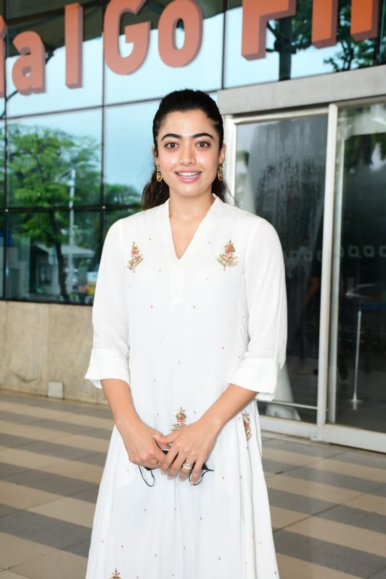 ಈ ಕಾರ್ಯಕ್ರಮ ಮುಗಿಸಿಕೊಂಡು ಮುಂಬೈ ವಿಮಾನ ನಿಲ್ದಾಣದಲ್ಲಿ ಕಾಣಿಸಿಕೊಂಡಿರುವ ರಶ್ಮಿಕಾ ಮಂದಣ್ಣ ಕ್ರೀಮಿ/ ವೈಟ್ ಬಣ್ಣದ ಸೆಲ್ವಾರ್ ಧರಿಸಿದ್ದಾರೆ.