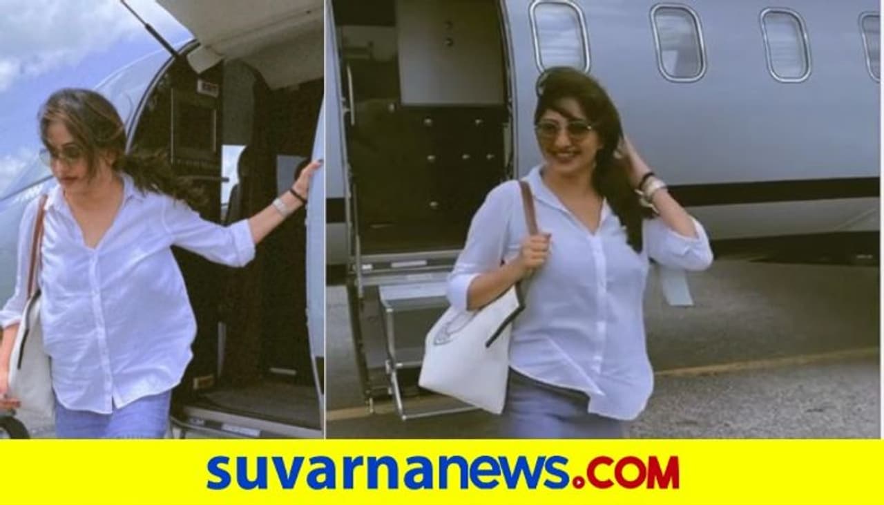 ಗುಳಿಕೆನ್ನೆ ಚೆಲುವೆ ರಚಿತಾ ರಾಮ್ ಅಭಿಮಾನಿಗಳ ಮುಂದೆ ಹಾಜರಾಗಿದ್ದಾರೆ. ವಿಮಾನದಿಂದ ಇಳಿಯುತ್ತಿರುವ ರಚಿತಾ ರಾಮ್ ಎಲ್ಲಿಗೆ ತೆರಳಿದ್ದಾರೆ?