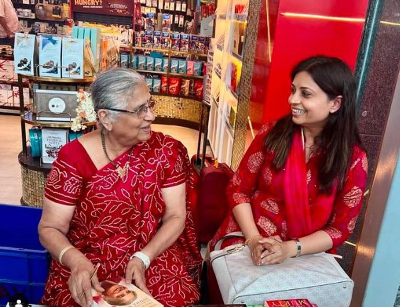 ವಿಮಾನ ನಿಲ್ದಾಣದ ಬುಕ್ ಅಂಗಡಿಯಲ್ಲಿ ಸುಧಾ ಮೂರ್ತಿ; ವಿಜಯ್ ಪ್ರಕಾಶ್ ಪತ್ನಿ, ಪುತ್ರಿ ಫುಲ್ ಖುಷ್!