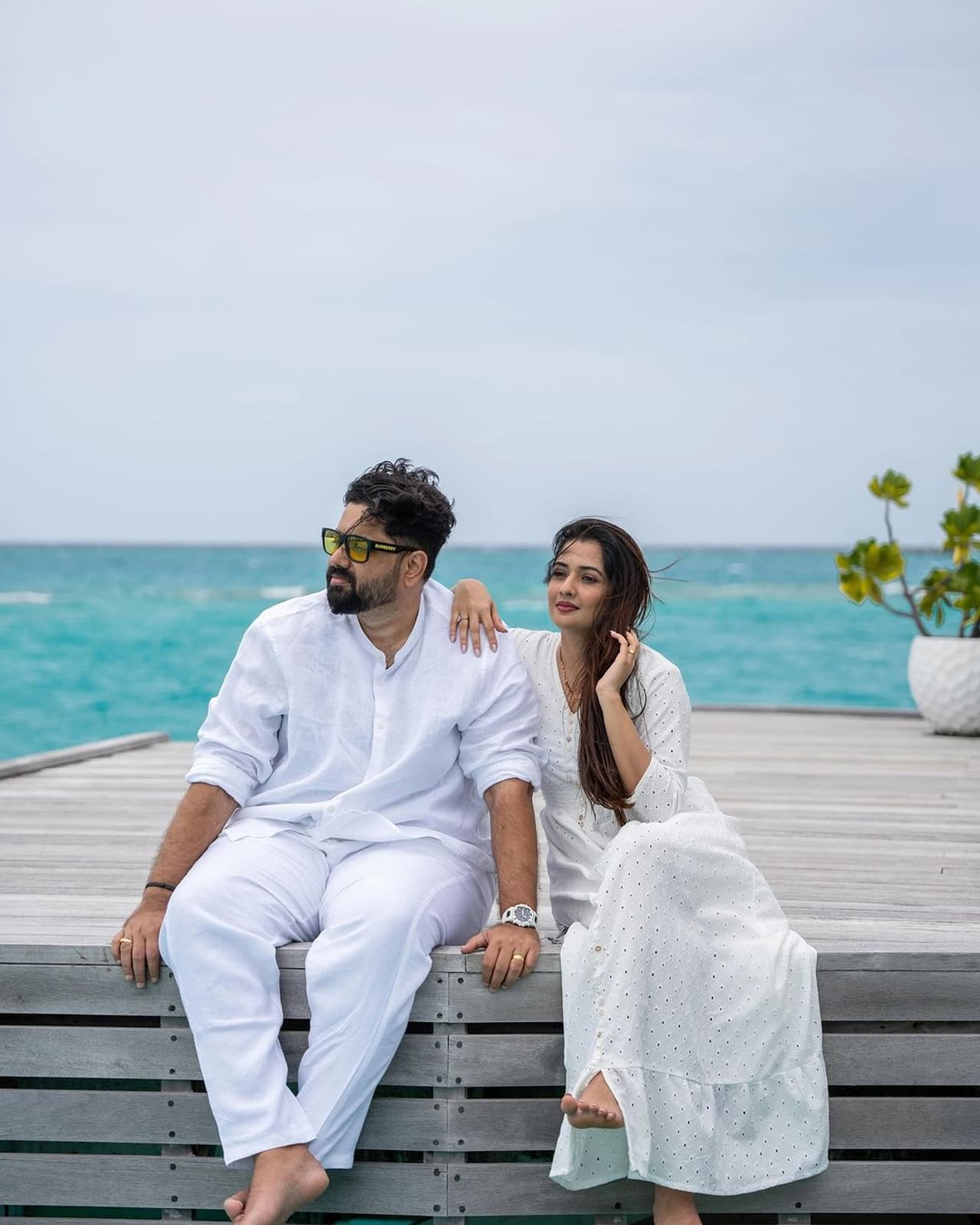 ಹನಿಮೂನ್ ಗಾಗಿ ಮಾಲ್ಡೀವ್ಸ್ ಗೆ ತೆರಳಿದ್ದ ಚಂದನವನದ ಈ ನವ ಜೋಡಿ, ಅಲ್ಲಿ ಎಂಜಾಯ್ ಮಾಡಿರುವ ಕೆಲವೊಂದು ವಿಡಿಯೋ ತುಣುಕು, ಫೋಟೊಗಳನ್ನು ತಮ್ಮ ಇನ್’ಸ್ಟಾಗ್ರಾಂ ಸ್ಟೋರಿಯಲ್ಲಿ ಶೇರ್ ಮಾಡಿದ್ದರು. ಇದೀಗ ಒಂದಷ್ಟು ರೊಮ್ಯಾಂಟಿಕ್ ಫೋಟೊಗಳನ್ನು (romantic photos) ಜೋಡಿ ಶೇರ್ ಮಾಡಿದೆ.