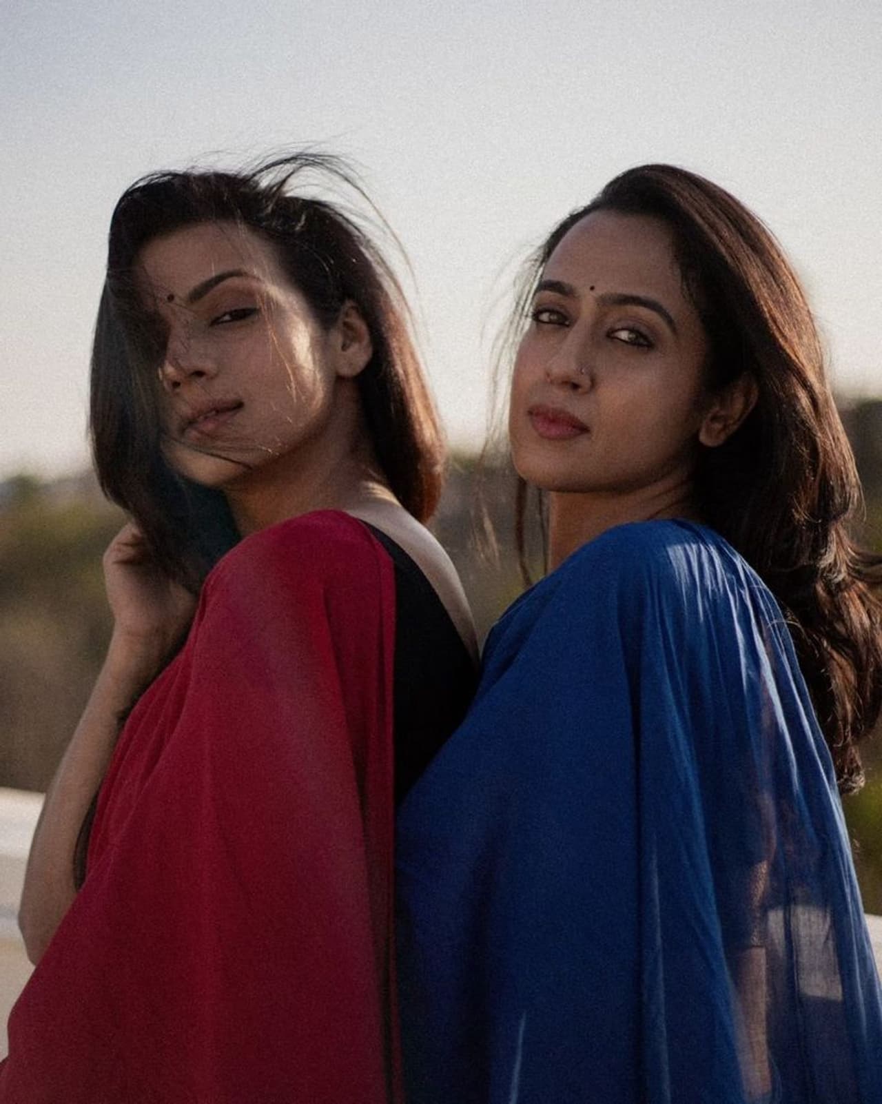 ಶ್ರುತಿ ಮರೂನ್ ಬಣ್ಣದ ಕಾಣನ್ ಸೀರೆ ಮತ್ತು ಸ್ನೇಹಿತೆ ನೀಲಿ ಬಣ್ಣದ ಸೀರೆ ಧರಿಸಿದ್ದು, ಇಬ್ಬರೂ ಜೊತೆಯಾಗಿ ಬೇರೆ ಬೇರೆ ರೀತಿಯಲ್ಲಿ ಪೋಸ್ ನೀಡಿದ್ದ ಫೋಟೋಗಳನ್ನ ಸಂಚಿತ್ ಹೆಗ್ಡೆ ಹಾಡಿರುವ ಏನಂದರೂನು ಹಾಗೆ ನೀ ನಂಗೆ ಅಲ್ಲವಾ ಎನ್ನುವ ಹಾಡಿನ ಜೊತೆ ಪೋಸ್ಟ್ ಮಾಡಿದ್ದು, ತಮ್ಮ ಜೀವನದ ಎಲ್ಲಾ ಸ್ನೇಹಿತೆಯರ ಬಗ್ಗೆ ಒಂದಷ್ಟು ಮಾಹಿತಿ ಹಂಚಿಕೊಂಡಿದ್ದಾರೆ.