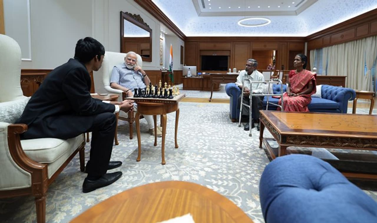 ಚೆಸ್ ವಿಶ್ವಕಪ್ನಲ್ಲಿ ರನ್ನರ್ ಅಪ್ ಸಾಧನೆ ಮಾಡಿದ ಆರ್. ಪ್ರಜ್ಞಾನಂದ ಹಾಗೂ ಅವರ ಕುಟುಂಬವನ್ನು ಪ್ರಧಾನಿ ನರೇಂದ್ರ ಮೋದಿ ಗುರುವಾರ ನವದೆಹಲಿಯಲ್ಲಿ ಭೇಟಿಯಾದರು.