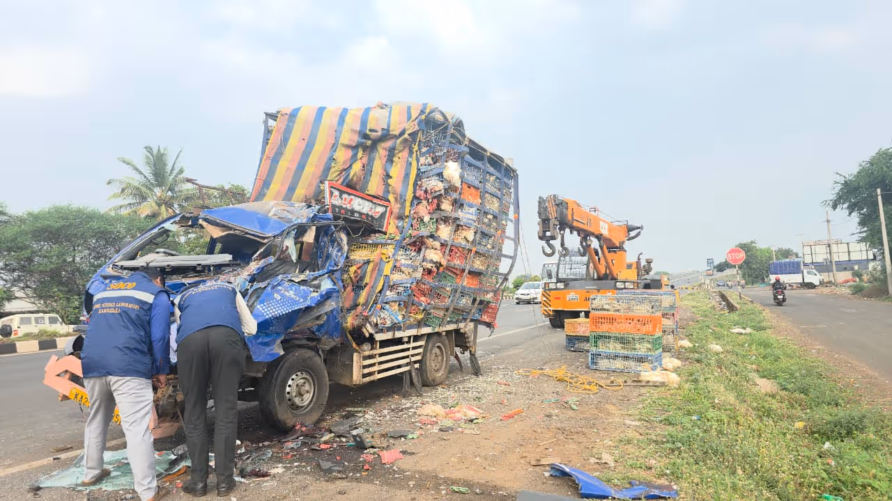 - ನಿಂತಿದ್ದ ಟ್ರಕ್ಗೆ ಡಿಕ್ಕಿ ಹೊಡೆದ ಗೂಡ್ಸ್ ಗಾಡಿ: ಇಬ್ಬರೂ ಸ್ಥಳದಲ್ಲೇ ಸಾವು, ನೂರಾರು ಕೋಳಿಗಳ ಮಾರಣಹೋಮ