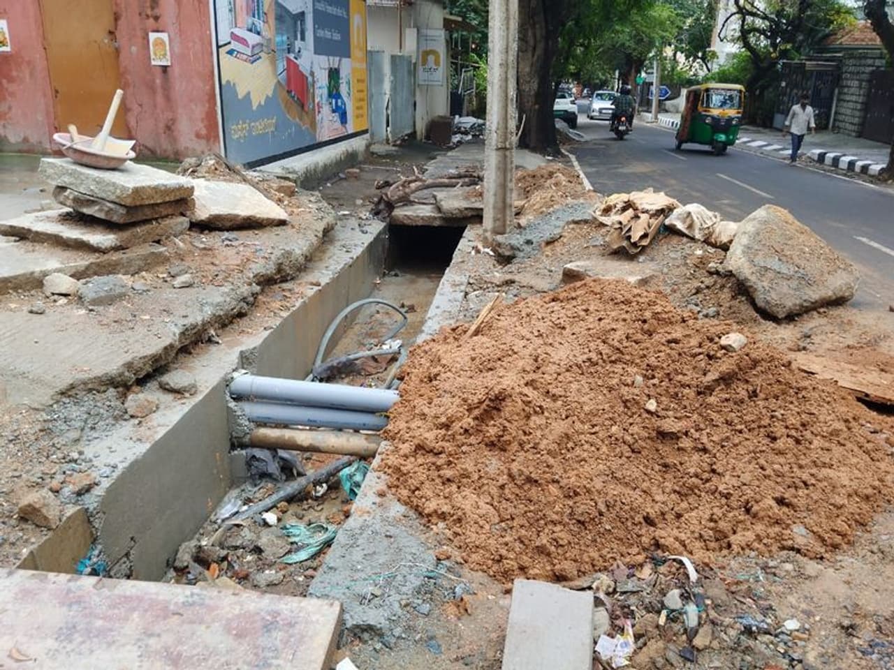 ಇದು ಬೆಂಗಳೂರಿನ ಹೃದಯಭಾಗವಾದ ಚಿಕ್ಕಪೇಟೆ ವಿಧಾನಸಭಾ ಕ್ಷೇತ್ರದ ಶಂಕರ ಮಠದ ಹತ್ತಿರ ಇರುವ ರಂಗರಾವ್ ರಸ್ತೆ. ಸರ್ಕಾರ ಹಣ ಬಿಡುಗಡೆ ಮಾಡದ ಕಾರಣ ಕೆಲಸ ಅರ್ಧಕ್ಕೆ ನಿಂತಿದೆ.
