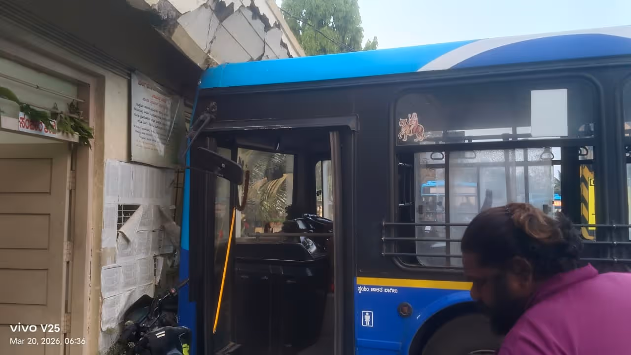 ಬಸ್ ಕೇವಲ ಬೈಕ್‌ಗೆ ಗುದ್ದಿ ನಿಲ್ಲಲಿಲ್ಲ. ಅದು ನೇರವಾಗಿ ನುಗ್ಗಿದ್ದು ಸಂಚಾರ ನಿಯಂತ್ರಕರ (Traffic Controller) ಕೊಠಡಿಗೆ. ಕಟ್ಟಡದ ಗೋಡೆಗೆ ಬಸ್ ಜೋರಾಗಿ ಅಪ್ಪಳಿಸಿದ ಸದ್ದಿಗೆ ಇಡೀ ಕಟ್ಟಡ ನಡುಗಿಹೋಯಿತು. ಬಸ್ ಗುದ್ದಿದ ಒಂದು ಬದಿಯ ಕಟ್ಟಡ, ಕಿಟಕಿ ಗೋಡೆ ಬಿರುಕು ಬಿಟ್ಟಿದೆ. ಒಂದು ವೇಳೆ ಕೊಠಡಿಯೊಳಗೆ ಜನಜಂಗುಳಿ ಇದ್ದಿದ್ದರೆ ಅಥವಾ ಬಸ್ ಮುಂಭಾಗದಲ್ಲಿ ಯಾರಾದರೂ ಇದ್ದಿದ್ದರೆ ಇಂದು ದೊಡ್ಡ ದುರಂತವೇ ಸಂಭವಿಸುತ್ತಿತ್ತು. ಅದೃಷ್ಟವಶಾತ್ ಈ ಭೀಕರ ಅಪಘಾತದಲ್ಲಿ ಯಾವುದೇ ಪ್ರಾಣಾಪಾಯ ಸಂಭವಿಸಿಲ್ಲ.