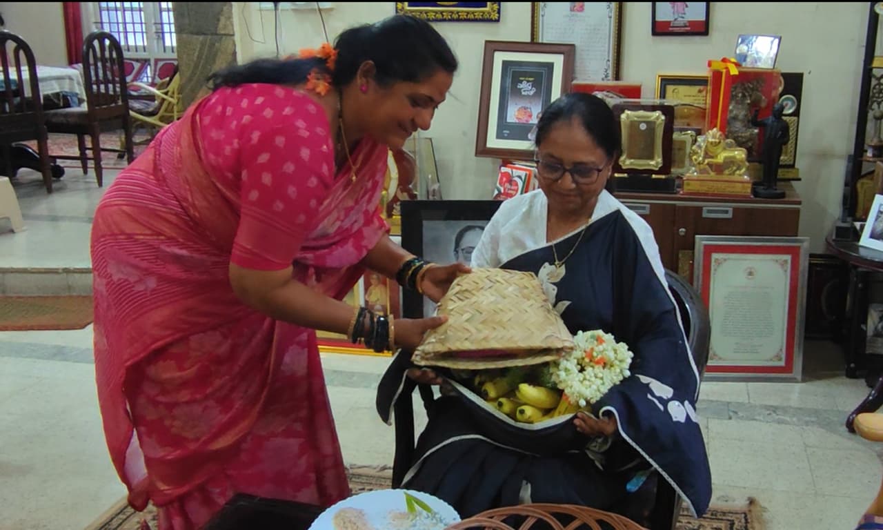 ಹೂ, ಬಳೆ, ಸೀರೆ, ಅರಿಶಿನ ಕುಂಕುಮ ನೀಡಿ ಶುಭ ಹಾರೈಸಿದರು. ನಿನ್ನೆ ತಾನೇ ಬಾನು ಮುಷ್ತಾಕ್ ಲಂಡನ್ನಿಂದ ಹಾಸನದ ಮನೆಗೆ ಆಗಮಿಸಿದ್ದರು. ನಟಿ ಶಶಿಕಲಾ ಅವರು ದಸರಾ ಉದ್ಘಾಟನೆಗೆ ಬಾನು ಮುಷ್ತಾಕ್ ಆಯ್ಕೆ ಹಿನ್ನೆಲೆಯಲ್ಲಿ ಗೌರವ ಸಲ್ಲಿಸಿದರು. ನಾಡ ಹಬ್ಬ ದಸರಾ ಉದ್ಘಾಟನೆ ಹಿನ್ನೆಲೆಯಲ್ಲಿ ಗೌರವ ಸಮರ್ಪಣೆ ಮಾಡಿದರು. ಈ ವೇಳೆ ಸಾಹಿತಿ ಭಾನು ಮುಷ್ತಾಕ್ ಖುಷಿಯಾಗಿ ಬಾಗಿನ ಸ್ವೀಕಾರ ಮಾಡಿದರು.