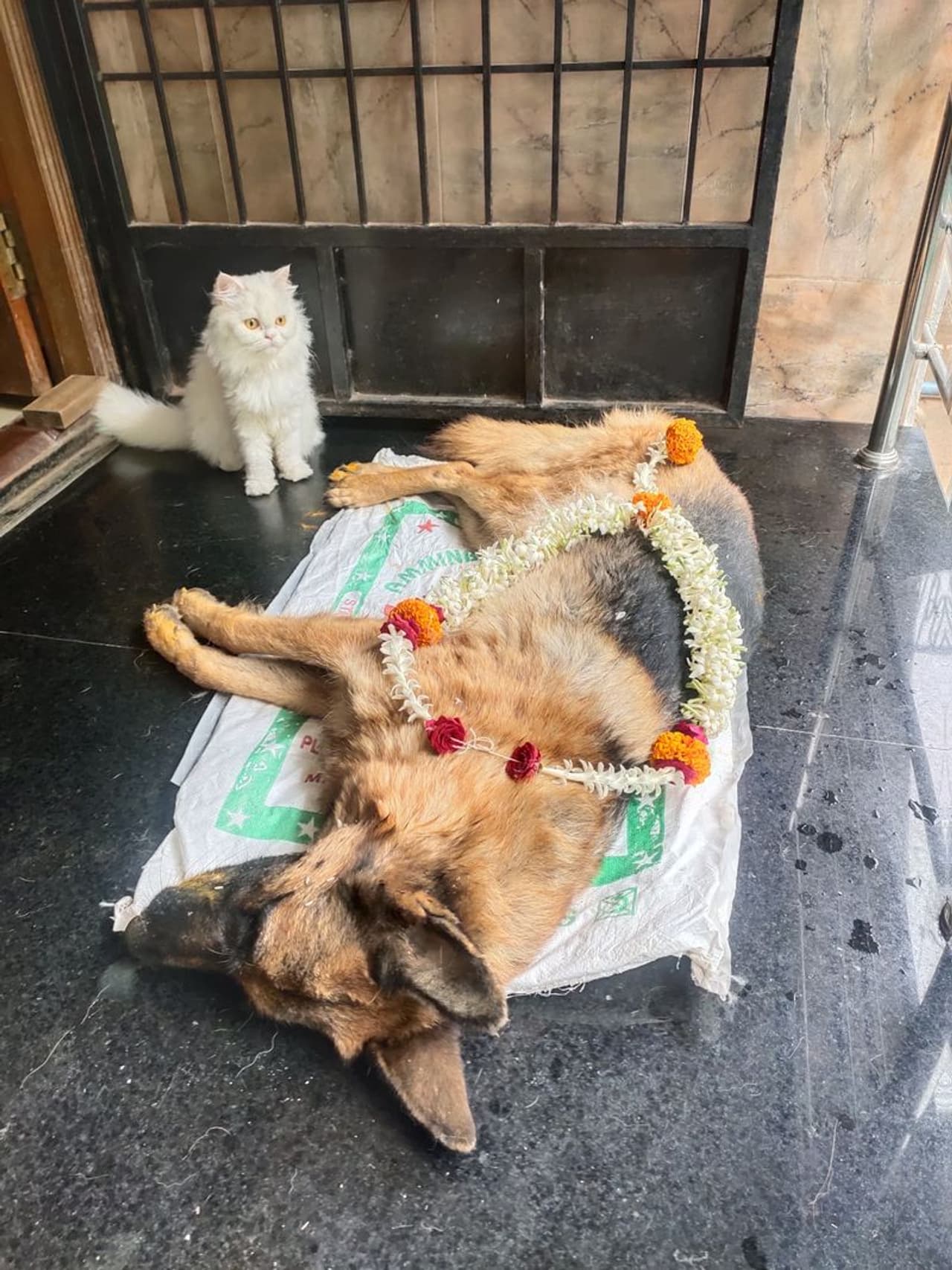 ಧಾರವಾಡದ ಕಲ್ಲಂದರ ಮುಲ್ಲಾ ಎನ್ನುವರ ಮನೆಯಲ್ಲಿ ಈ ಘಟನೆ ನಡೆದಿದೆ ನಾಯಿ ಹಾಗೂ ಬೆಕ್ಕಿನ ಮರಿ ಸಾಕಿದ್ದ ಕಲ್ಲಂದರ ಮುಲ್ಲಾ ಅವರಿಗೆ, ಏಕಾಏಕಿ ಮನೆಯಲ್ಲಿ ಸಾಕಿದ್ದ ಜರ್ಮನ್ ಶಪರ್ಢ ನಾಯಿ ಅಗಲಿಕೆ ಸಾಕಷ್ಟು ದು:ಖವನ್ನು ತರಿಸಿದೆ.ಅನಾರೋಗ್ಯದಿಂದ ನಾಯಿ ಸಾವನ್ನಪ್ಪಿದೆ.ಅದಕ್ಕಾಗಿ ಅಂತ್ಯ ಸಂಸ್ಕಾರ ಮಾಡಿ 3 ನೇ ದಿನದ ಕಾರ್ಯವನ್ನು ಮಾಡಿದ್ದಾರೆ.