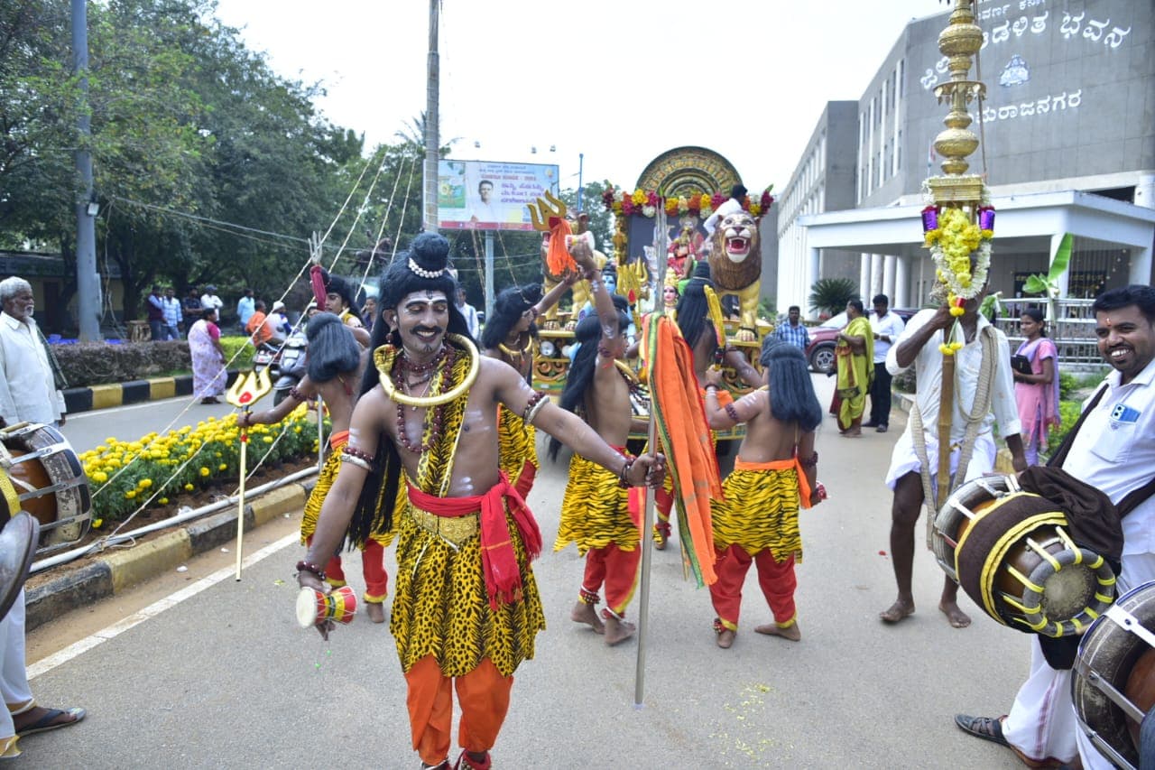 ನಂತರ ದೇವಾಲಯದ ಮುಂಭಾಗದಲ್ಲಿ ಹಾಕಲಾಗಿರುವ ಚಾಮರಾಜನಗರ ದಸರಾ ಮಹೋತ್ಸವದ ಮುಖ್ಯ ವೇದಿಕೆಯಲ್ಲಿ ಜಿಲ್ಲಾ ಉಸ್ತುವಾರಿ ಸಚಿವರಾದ ಕೆ. ವೆಂಕಟೇಶ್ ಅವರು ಡೊಳ್ಳು ಬಾರಿಸಿ ಸಾಂಸ್ಕøತಿಕ ಕಾರ್ಯಕ್ರಮಗಳಿಗೆ ಚಾಲನೆ ನೀಡಿದರು.