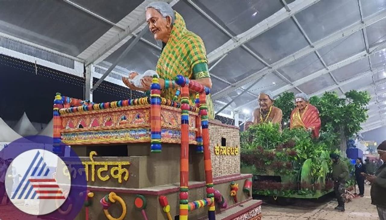 ದೆಹಲಿ (ಜ.22): ಗಣರಾಜ್ಯೋತ್ಸವದ ವೇಳೆ ದೆಹಲಿಯ ಕರ್ತವ್ಯ ಪಥ್ ನಲ್ಲಿ ಪ್ರದರ್ಶನಗೊಳ್ಳಿದೆ ಕರ್ನಾಟಕ ಟ್ಯಾಬ್ಲೋ. ತ್ಯಾಗ, ನಿಸ್ವಾರ್ಥ ಸೇವೆಯ ಪ್ರತಿರೂಪ ನಾರಿ ಶಕ್ತಿ ಈ ಬಾರಿಯ ಟ್ಯಾಬ್ಲೋ ಸಿದ್ಧಗೊಂಡಿದೆ.ದೇಶದ ರಾಜಧಾನಿ ದೆಹಲಿಯಲ್ಲಿ ಜ.26ರಂದು ನಡೆಯಲಿರುವ ಗಣರಾಜ್ಯೋತ್ಸವ ಪರೇಡ್ನಲ್ಲಿ ಕರ್ನಾಟಕದ ಸ್ತಬ್ದಚಿತರ ಪ್ರದರ್ಶನಕ್ಕೆ ಅನುಮತಿ ನೀಡುವ ಕುರಿತಾಗಿ ವಿವಾದ ಆರಂಭವಾಗಿತ್ತು. ನಂತರ ರಾಜ್ಯದ ಕೇಂದ್ರ ಸಚುವರು, ಸಂಸದರು ಹಾಗೂ ಮುಖ್ಯಮಂತ್ರಿ ಬಸವರಾಜ ಬೊಮ್ಮಾಯಿ ಅವರ ನಿರಂತರ ಒತ್ತಡದ ಫಲದಿಂದ ಸ್ತಬ್ದಚಿತ್ರ ಪ್ರದರ್ಶನಕ್ಕೆ ಒಪ್ಪಿಗೆ ದೊರೆತಿತ್ತು. ಈಗ ಸ್ತಬ್ದಚಿತ್ರವೂ ಸಿದ್ಧಗೊಂಡಿದ್ದು, ಅದರ ಅಪರೂಪದ ದೃಶ್ಯಗಳನ್ನು ನಾವು ಇಲ್ಲಿ ಕಣ್ತುಂಬಿಕೊಳ್ಳಬಹುದು.ಗಣರಾಜ್ಯೋತ್ಸವದ ವೇಳೆ ದೆಹಲಿಯ ಕರ್ತವ್ಯ ಪಥ್ ನಲ್ಲಿ ಪ್ರದರ್ಶನಗೊಳ್ಳಿದೆ ಕರ್ನಾಟಕ ಟ್ಯಾಬ್ಲೋ. ತ್ಯಾಗ, ನಿಸ್ವಾರ್ಥ ಸೇವೆಯ ಪ್ರತಿರೂಪ ನಾರಿ ಶಕ್ತಿ ಈ ಬಾರಿಯ ಟ್ಯಾಬ್ಲೋ ಸಿದ್ಧಗೊಂಡಿದೆ. ಪದ್ಮ ಪ್ರಶಸ್ತಿ ಪುರಸ್ಕೃತ ವೃಕ್ಷ ಮಾತೆಯರಾದ ಸಾಲುಮರದ ತಿಮ್ಮಕ್ಕ. ತುಳಸೀಗೌಡ ಹಾಲಕ್ಕಿ ಹಾಗೂ ಸೂಲಗಿತ್ತಿ ನರಸಮ್ಮ ಅವರ ಸ್ತಬ್ಧಚಿತ್ರ ಪ್ರದರ್ಶನ ಆಗುತ್ತಿದೆ. ಈ ಹಿರಿಯ ಮಹಿಳೆಯರು ನಮ್ಮ ನಾಡಿನ ಹೆಮ್ಮೆಯ ಪ್ರತೀಕವೂ ಆಗಿದ್ದು, ಅವರು ನಾಡಿಗಾಗಿ ಸಲ್ಲಿಸಿದ ಸೇವೆಯನ್ನು ಗುರುತಿಸಿ ಗೌರವಿಸುವ ಅಭೂತಪೂರ್ವ ಕ್ಷಣವಾಗಲಿದೆ. Republic Day parade Tableau: ಕರ್ನಾಟಕದ ಸ್ತಬ್ಧಚಿತ್ರಕ್ಕೆ ಕೊನೆಗೂ ಅನುಮತಿಕೊನೆ ಕ್ಷಣದಲ್ಲಿ ಕರ್ನಾಟಕಕ್ಕೆ ದೊರೆತ ಅವಕಾಶ : ರಾಜ್ಯದ ಸ್ತಬ್ದ ಚಿತ್ರ ಪ್ರದರ್ಶನ ಮಾಡುವುದಕ್ಕೆ ಕೇಂದ್ರದ ಸಮಿತಿಯು ಒಪ್ಪಿಗೆ ನೀಡಿರಲಿಲ್ಲ. ಆದರೆ, ಸಮಿತಿ ನಿರೀಕ್ಷೆ ಮಾಡಿದ್ದ ಎಲ್ಲ ಮಾನದಂಡಗಳನ್ನು ಪೂರೈಸಿದ ಕರ್ನಾಟಕ ರಾಜ್ಯದ ಸ್ತಬ್ದಚಿತ್ರಕ್ಕೆ ಕೊನೇ ಕ್ಷಣದಲ್ಲಿ ಟ್ಯಾಬ್ಲೋ ಪ್ರದರ್ಶನಕ್ಕೆ ಅನುಮತಿ ದೊರೆತಿತ್ತು. ಕೇಂದ್ರ ಸರ್ಕಾರದ ರಕ್ಷಣಾ ಇಲಾಖೆ ಕನ್ನಡಿಗರ ಆಕ್ರೋಶ ಕ್ಕೆ ಮಣಿದು ಟ್ಯಾಬ್ಲೋ ಗೆ ಅವಕಾಶ ನೀಡಿತ್ತು.ಏಳು ದಿನದಲ್ಲಿ ಟ್ಯಾಬ್ಲೋ ಸಿದ್ಧ: ಕರ್ನಾಟಕದ ಪ್ರಸಿದ್ಧ ಈ ಟ್ಯಾಬ್ಲೋವನ್ನು ಕನ್ನಡದ ಪ್ರಸಿದ್ಧ ಕಲಾವಿದರು ಕೇವಲ ಏಳೇ ದಿನಗಳಲ್ಲಿ ಸಿದ್ದಪಡಿಸಿದ್ದಾರೆ. ಕಲಾವಿದ ಶಶಿಧರ್ ಅಡಪ ಅವರ ನೇತೃತ್ವದ ತಂಡದಲ್ಲಿ ವಿನ್ಯಾಸ ಮಾಡಲಾಗಿದೆ. ವಾರ್ತಾ ಇಲಾಖೆಯ ಆಯುಕ್ತ ಡಾ.ಹರ್ಷ ನೇತೃತ್ವದಲ್ಲಿ ಮೇಲುಸ್ತುವಾರಿ ವಹಿಸಿಕೊಂಡಿದ್ದರು. ಒಟ್ಟಾರೆ ರಾಜ್ಯದ ಟ್ಯಾಬ್ಲೋ ಗಣರಾಜ್ಯೋತ್ಸವದ ಪರೇಡ್ನಲ್ಲಿ ಪ್ರದರ್ಶನ ಮಾಡುತ್ತಿರುವುದಕ್ಕೆ ಭಾರಿ ಸಂತಸ ವ್ಯಕ್ತವಾಗಿದೆ.