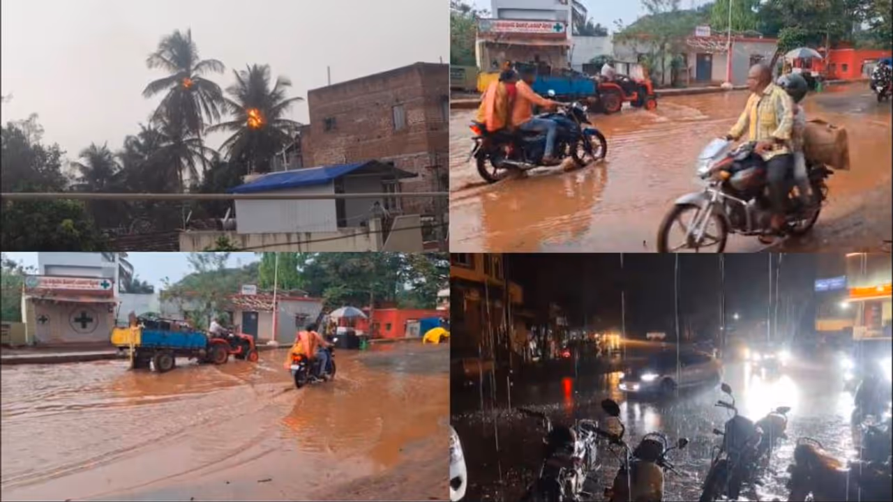 ಬೀದರ್, ಬೆಳಗಾವಿಯಲ್ಲಿ ಭಾರಿ ಮಳೆ: ಶಿವಮೊಗ್ಗದಲ್ಲಿ ಸಿಡಿಲು ಬಡಿದು ಹೊತ್ತಿ ಉರಿದ ತೆಂಗಿನ ಮರ