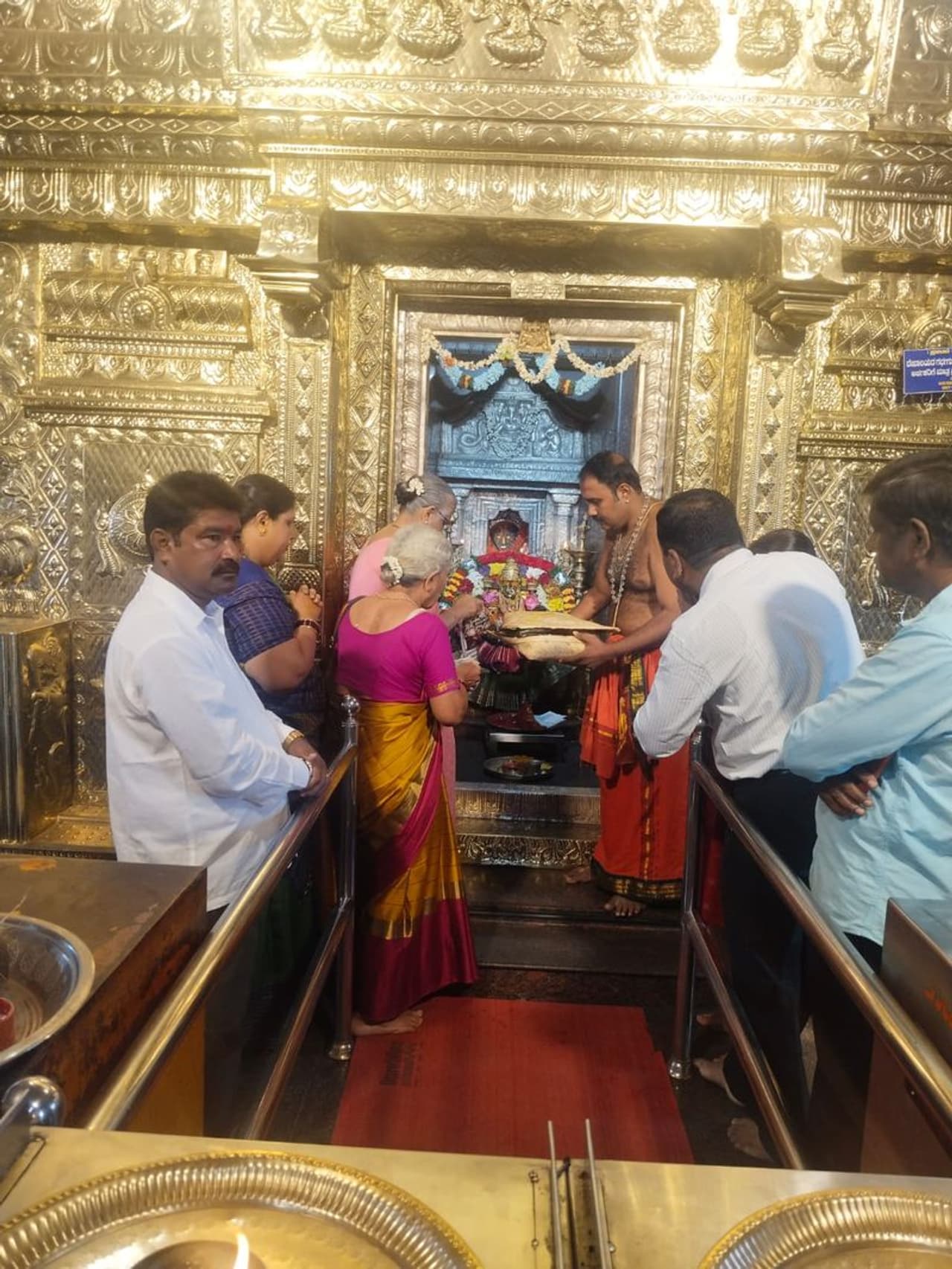 ಮಹಾಲಕ್ಷ್ಮಿ ತಾಯಿಯ ದರ್ಶನ ಮಾಡಿ, ಪೂಜೆ ಸಲ್ಲಿಸಿದ ಸುಧಮ್ಮ ಬಳಿಕ ದೇವಸ್ಥಾನದ ಆಡಳಿತ ಮಂಡಳಿ ಜೊತೆ ಕೆಲಕಾಲ ಚರ್ಚೆ ನಡೆಸಿದರು. ಈ ವೇಳೆ ದೇವಸ್ಥಾನದ ಆಡಳಿತ ಮಂಡಳಿ ವತಿಯಿಂದ ಸುಧಾಮೂರ್ತಿಯವರಿಗೆ ಸನ್ಮಾನಿಸಿ ಗೌರವಿಸಿದರು.