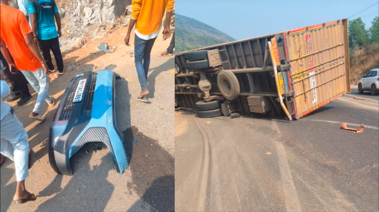 ಕಾರವಾರ: ಕಾರಿನ ಮೇಲೆ ಮಗುಚಿದ ಕಂಟೈನರ್ ಟ್ರಕ್: ಕುಡುಕ ಚಾಲಕನ ಅವಾಂತರಕ್ಕೆ ಬಾಲಕ ಬಲಿ