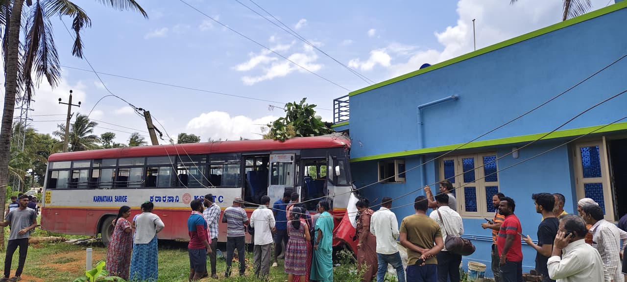 ತಿಪಟೂರಿನಲ್ಲಿ ಮನೆಯೊಳಗೆ ನುಗ್ಗಿದ KSRTC ಬಸ್; 10 ಮಂದಿಗೆ ಗಾಯ