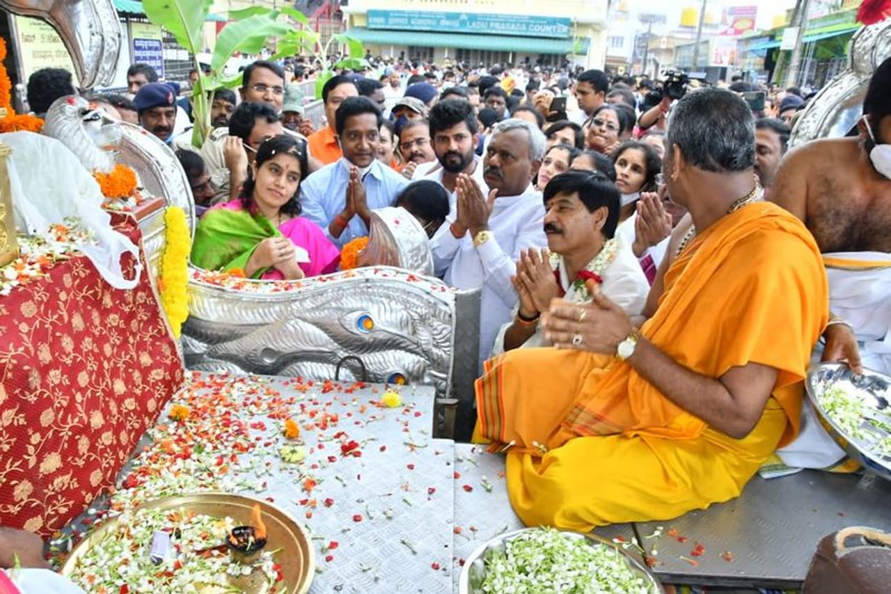 ಮೈಸೂರು: ಶ್ರೀಚಾಮುಂಡೇಶ್ವರಿ ಉತ್ಸವ ಮೂರ್ತಿಗೆ ಸಚಿವ ಎಸ್.ಟಿ.ಸೋಮಶೇಖರ್ ಚಾಲನೆ