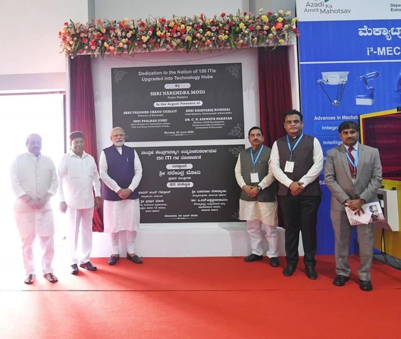 ಬೆಂಗಳೂರು ವಿಶ್ವವಿದ್ಯಾಲಯ ಆವರಣದಲ್ಲಿ ರೂ. 4,736 ಕೋಟಿ ವೆಚ್ಚದ ತಂತ್ರಜ್ಞಾನ ಕೇಂದ್ರಗಳಾಗಿ ಉನ್ನತೀಕರಿಸಿರುವ 150 ಐಟಿಐಗಳನ್ನು ರಾಷ್ಟ್ರಕ್ಕೆ ಸಮರ್ಪಿಸಿದರು. .(ಫೋಟೋ ಕೃಪೆ A Veeramani ಕನ್ನಡಪ್ರಭ)