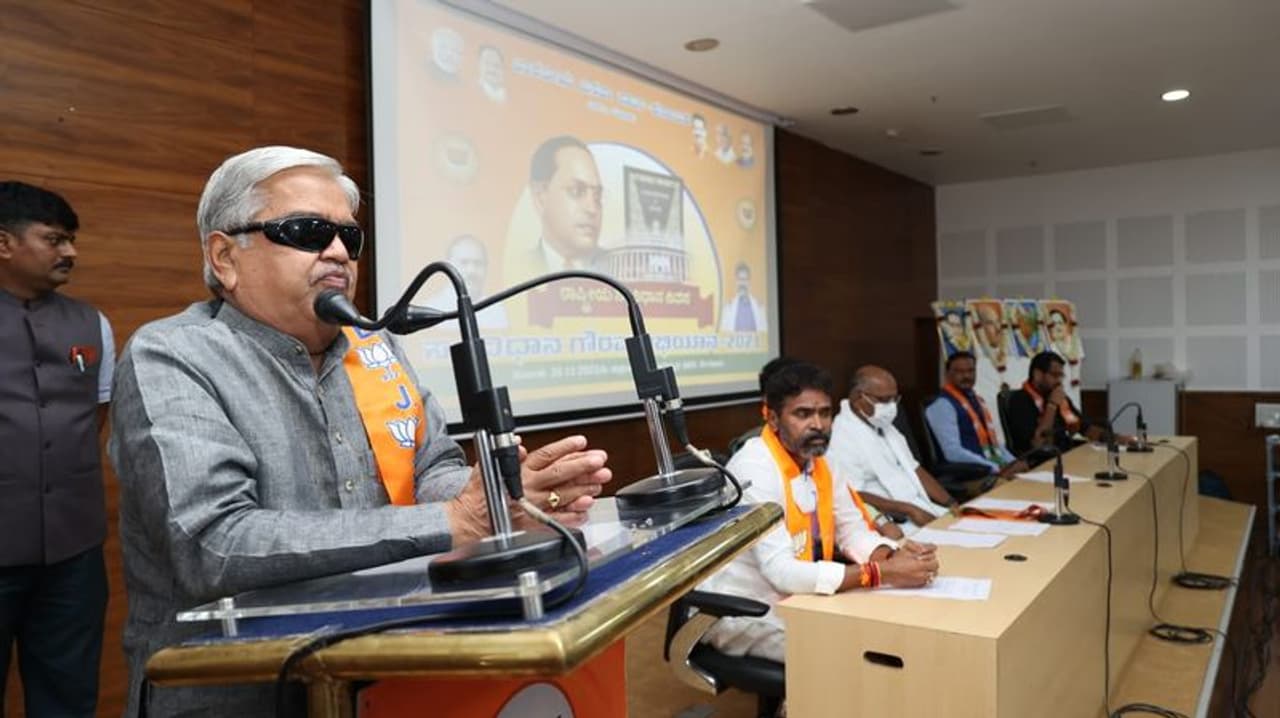 ಮಲ್ಲೇಶ್ವರದ ಬಿಜೆಪಿ(BJP) ಕಚೇರಿಯಲ್ಲಿ ಶುಕ್ರವಾರ ರಾಜ್ಯ ಎಸ್ಸಿ ಮೋರ್ಚಾ ವತಿಯಿಂದ ನಡೆದ ಸಂವಿಧಾನ(Constitution) ಗೌರವ ಅಭಿಯಾನ ಕಾರ್ಯಕ್ರಮದಲ್ಲಿ ಮಾತನಾಡಿದ ಅವರು, ದೇಶದ ಉದ್ದಗಲಕ್ಕೆ ಡಾ. ಅಂಬೇಡ್ಕರ್ ಅವರ ಸಂವಿಧಾನ ಸಮರ್ಪಣೆ ದಿನಾಚರಣೆ ನಡೆಸಲಾಗಿದೆ. ಅವರ ಅತ್ಯಮೂಲ್ಯ ಕಾರ್ಯವನ್ನು ನೆನಪಿಸಿಕೊಳ್ಳಲಾಗುತ್ತಿದೆ. ಪ್ರಧಾನಿ ನರೇಂದ್ರ ಮೋದಿ(Narendra Modi) ಅವರು ಡಾ. ಅಂಬೇಡ್ಕರ್ ಅವರು ಹುಟ್ಟಿಬೆಳೆದ ಮನೆ, ನೆಲೆಸಿದ್ದ ನಿವಾಸ, ಅವರ ಕಾರ್ಯಾಲಯ, ಹೆಚ್ಚಿನ ವಿದ್ಯಾಭ್ಯಾಸಕ್ಕಾಗಿ ವಿದೇಶದಲ್ಲಿ ವಾಸವಿದ್ದ ಮನೆಯನ್ನೂ ಖರೀದಿಸಿ ಅಭಿವೃದ್ಧಿಪಡಿಸಿದ್ದಾರೆ. ಅಲ್ಲದೇ, ಸಮಾಧಿ ಸ್ಥಳವನ್ನೂ ಸಹ ಅಭಿವೃದ್ಧಿಪಡಿಸಲಾಗಿದೆ ಎಂದು ತಿಳಿಸಿದ ಕಾರಜೋಳ