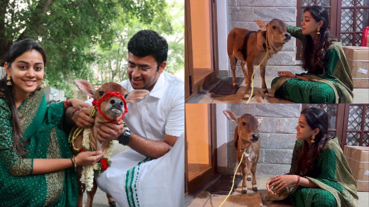 ತೇಜಸ್ವಿ ಸೂರ್ಯ-ಶಿವಶ್ರೀ ಸ್ಕಂದಪ್ರಸಾದ್ ದಂಪತಿ ಮುದ್ದಾದ ಕರುವನ್ನು ಮನೆಗೆ ತಂದಿದ್ದಾರೆ. ಮನೆಗೆ ಬಂದಿರುವ ಅತಿಥಿಯನ್ನು ಶಿವಶ್ರೀ ಚೆಂದದ ಹಾಡು ಹೇಳಿ ಬರಮಾಡಿಕೊಂಡಿದ್ದಾರೆ.