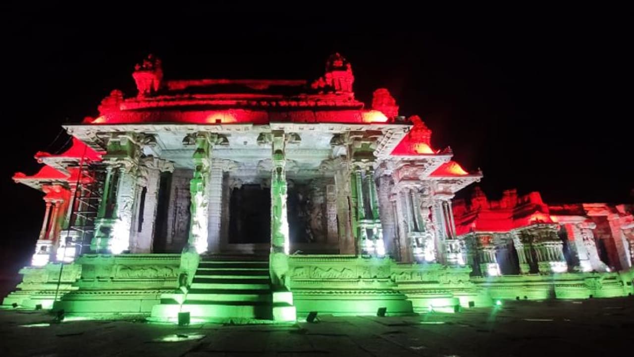 ಹಂಪಿಯ ಸ್ಮಾರಕಗಳಲ್ಲಿ ಕಣ್ಮನ ಸೆಳೆಯುವ ತ್ರಿವರ್ಣ ಬೆಳಕಿನ ಚಿತ್ತಾರ