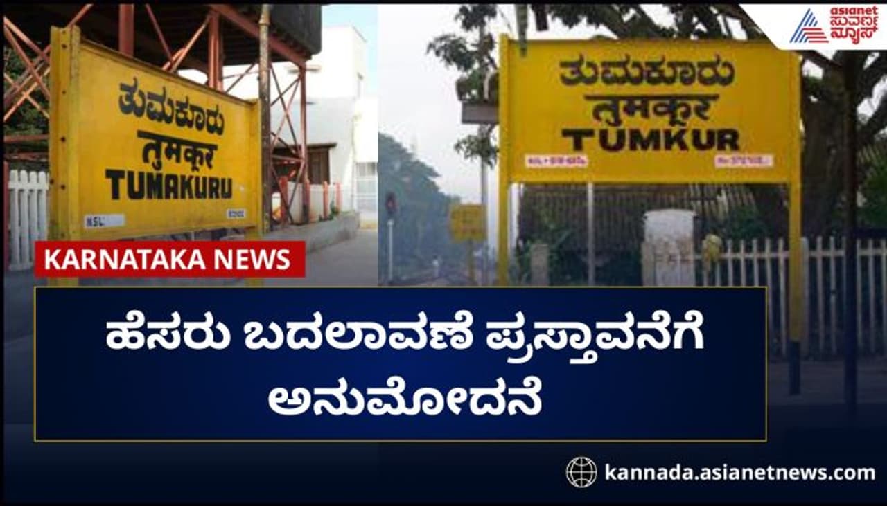 - ತುಮಕೂರು ರೈಲು ನಿಲ್ದಾಣದ ಹೆಸರು ಬದಲಾವಣೆ ಪ್ರಸ್ತಾವನೆಗೆ ಅನುಮೋದನೆ ನೀಡಿದ ಸರ್ಕಾರ
