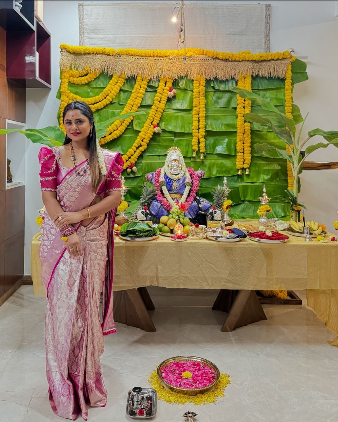 ಇನ್ನು ಹಬ್ಬದ ಸಡಗರದಲ್ಲಿ ದೀಪಿಕಾ ದಾಸ್ ಲಕ್ಷ್ಮೀ ದೇವಿಯನ್ನು ಸಿಂಗರಿಸಿ, ಅದ್ಧೂರಿಯಾಗಿ ಪೂಜೆ ಮಾಡಿದ್ದು, ನಟಿ ಪಿಂಕ್ ಬಣ್ಣದ ಸಿಲ್ಕ್ ಸೀರೆಯಲ್ಲಿ ತುಂಬಾನೆ ಮುದ್ದಾಗಿ ಕಾಣಿಸುತ್ತಿದ್ದಾರೆ. ಅಭಿಮಾನಿಗಳು ಸಹ ನಟಿಯ ಸಾಂಪ್ರದಾಯಿಕ ಲುಕ್ ನೋಡಿ ಏನೇ ಹೇಳು ಸುಂದರಿ ಸೀರೆಯುಟ್ಟಗ ನಿನ್ನ ಮೊಗದ ನಗುವ ಬಣ್ಣಿಸಲು ಪದಗಳೇ ಸಾಲದು ಎಂದಿದ್ದಾರೆ, ಅಷ್ಟೇ ಅಲ್ಲದೇ ಸೀರೆಯಲ್ಲಿ ದೇವತೆ ತರ ಕಾಣಿಸ್ತಿದ್ದೀರಿ ಅಂತಾನು ಹೇಳಿದ್ದಾರೆ.