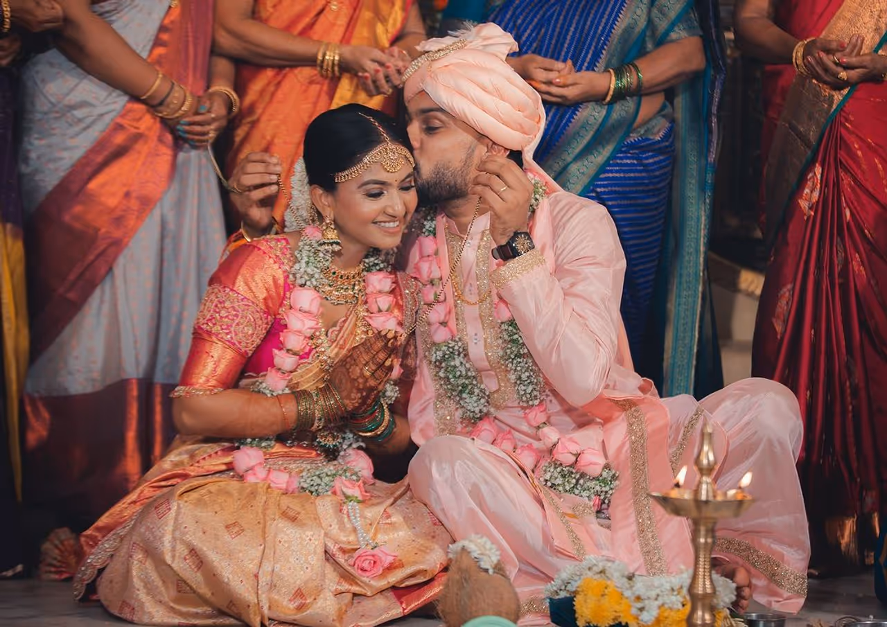 ನಟಿ ರಶ್ಮಿತಾ ಕ್ರೀಂ ಬಣ್ಣದ ಸೀರೆಯುಟ್ಟು, ಅದಕ್ಕೆ ಪಿಂಕ್ ಬಣ್ಣದ ಬ್ಲೌಸ್ ಧರಿಸಿದ್ದಾರೆ. ಇನ್ನು ಅವರ ಪತಿ ಸುದರ್ಶನ್ ಐವರಿ ಬಣ್ಣದ ಪಂಚೆ ಚಲ್ಯ ಧರಿಸಿದ್ದಾರೆ. ಸುದರ್ಶನ್ ಅವರ ಸೋಶಿಯಲ್ ಮೀಡೀಯಾ ಪ್ರೊಫೈಲ್ ನೋಡಿದ್ರೆ ಅವರು ಮಂಗಳೂರಿನಲ್ಲಿ ತಮ್ಮದೇ ಆದ ರೆಸಾರ್ಟ್ ನಡೆಸುತ್ತಿರುವಂತಿದೆ.