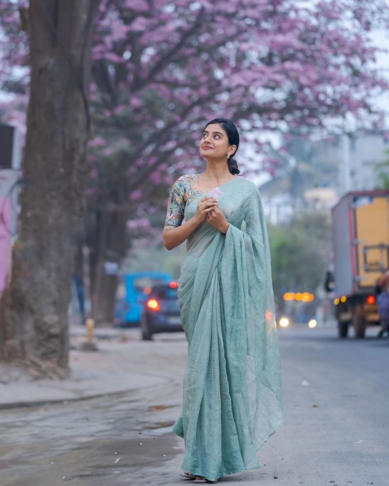 ಸೀರೆಯ ಬಣ್ಣ, ಜೊತೆಗೆ ಬೆಂಗಳೂರಿನ ಬೀದಿಗಳಲ್ಲಿ ಅರಳಿ ನಿಂತಿರುವ ಗುಲಾಬಿ ಹೂವಿನ (pink blossoms) ರಂಗು, ಅದರ ಜೊತೆಗೆ ನಿಮ್ಮ ಎಲಿಗೆಂಟ್ ಲುಕ್ (Elegant Look), ಎಲ್ಲವೂ ಸೇರಿ ತುಂಬಾನೆ ಸುಂದರವಾಗಿ ಕಾಣಿಸುತ್ತೆ ಎಂದು ಅಭಿಮಾನಿಗಳು ಕಾಮೆಂಟ್ ಮಾಡಿದ್ದಾರೆ.