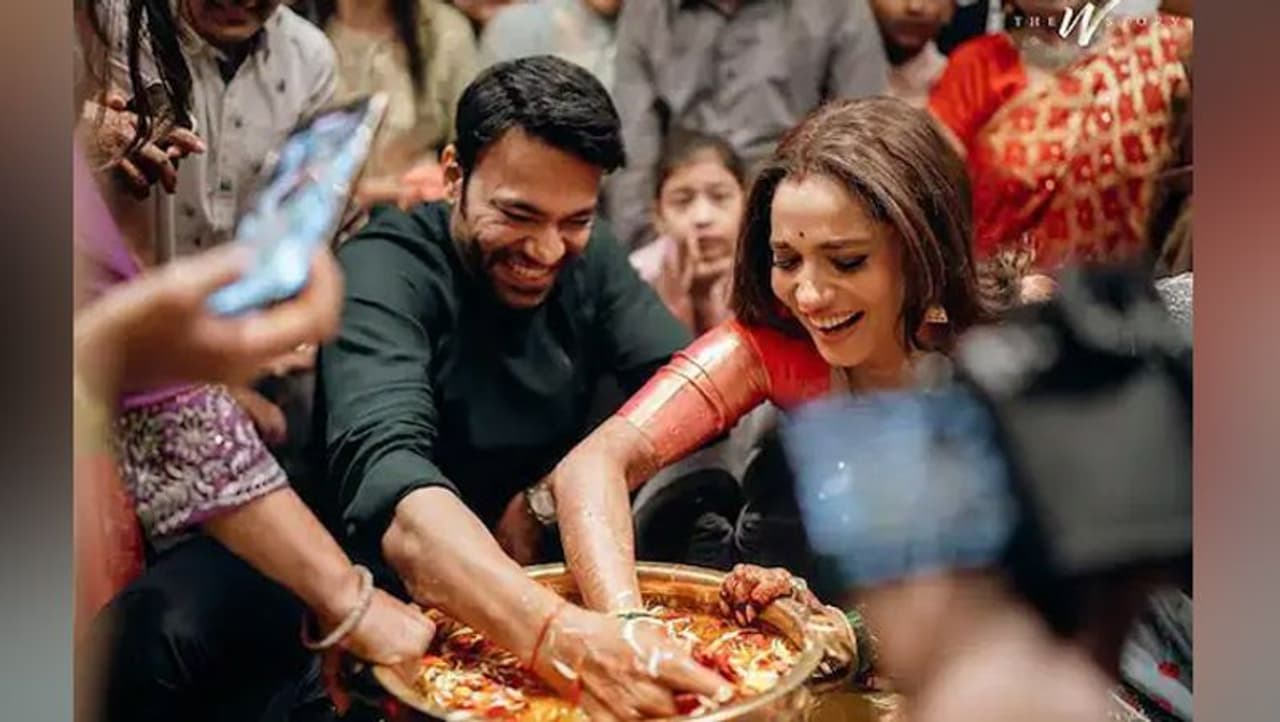 ಅಂಕಿತಾ ಅವರು ವಿಕ್ಕಿಯೊಂದಿಗೆ ಮದುವೆಯ ನಂತರದ ಆಚರಣೆಗಳ ಕೆಲವು ಫೋಟೋಗಳನ್ನು ಹಂಚಿಕೊಂಡಿದ್ದಾರೆ, ಇದರಲ್ಲಿ ಇಬ್ಬರೂ ತಟ್ಟೆಯಲ್ಲಿ ಉಂಗುರವನ್ನು ಹುಡುಕುತ್ತಿದ್ದಾರೆ. ಇಬ್ಬರೂ ಸಾಕಷ್ಟು ರೋಮ್ಯಾಂಟಿಕ್ ಆಗಿರುವುದು ಫೋಟೋಗಳಲ್ಲಿ ಕಾಣಬಹುದು.