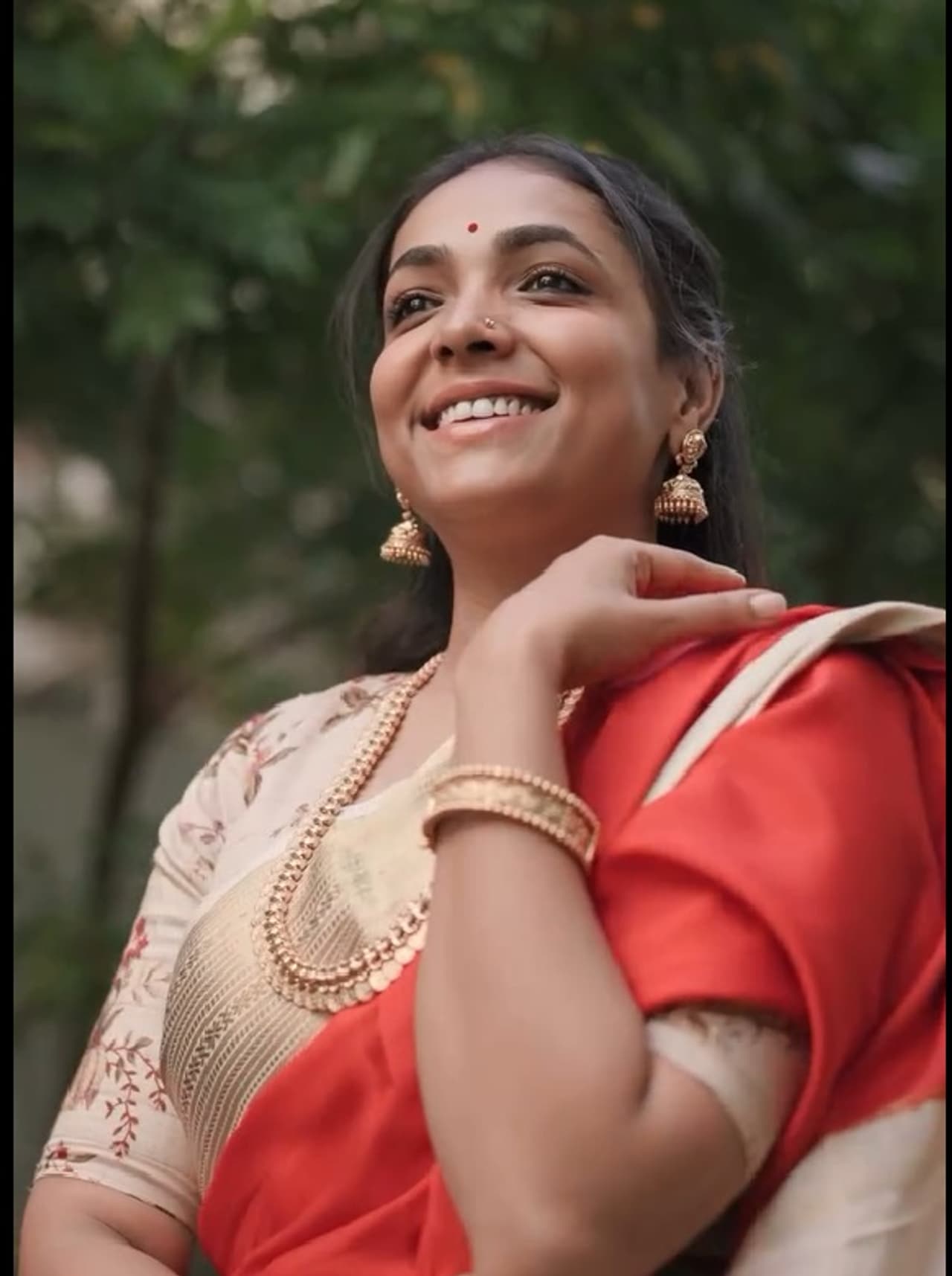 ಐವರಿ ಬಣ್ಣದ ಬಾರ್ಡರ್ ಮತ್ತು ಪಲ್ಲೂ ಇರುವ ಕೆಂಪು ಬಣ್ಣದ ಮೈಸೂರ್ ಸಿಲ್ಕ್ ಸೀರೆ ಧರಿಸಿರುವ ಅನುಪಮಾ ನನ್ನ ಸೀರೆ ಬಣ್ಣ ನಿನ್ನ ಹೃದಯಕ್ಕೆ ಮ್ಯಾಚ್ ಆಗುತ್ತೆ (My saree color matches with your heart) ಎಂದು ಬರೆದುಕೊಂಡಿದ್ದಾರೆ.