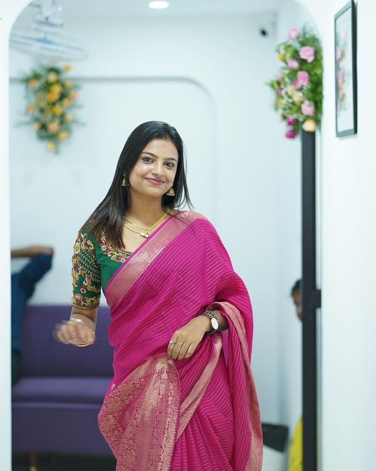 ಪಿಂಕ್ ಕಲರ್ ಸೀರೆಯಲ್ಲಿ ಸೋನು ಗೌಡ ಮಿಂಚಿದ್ದು, ವಿವಿಧ ಭಂಗಿಗಳಲ್ಲಿ ಕ್ಯಾಮೆರಾಗೆ ಪೋಸ್ ಕೊಟ್ಟಿದ್ದಾರೆ. ಜೊತೆಗೆ ಅದಕ್ಕೆ ಮ್ಯಾಚ್ ಆಗುವ ಹಾಗೆ ಕಿವಿಯೋಲೆ, ಬಳೆಗಳನ್ನು ತೊಟ್ಟಿದ್ದಾರೆ. ಅವರ ಸರಳವಾದ ಮೇಕಪ್, ಫ್ರೀ ಬಿಟ್ಟ ಹೇರ್ಸ್ಟೈಲ್ ಸಖತ್ ಹೈಲೈಟ್ ಆಗಿತ್ತು.