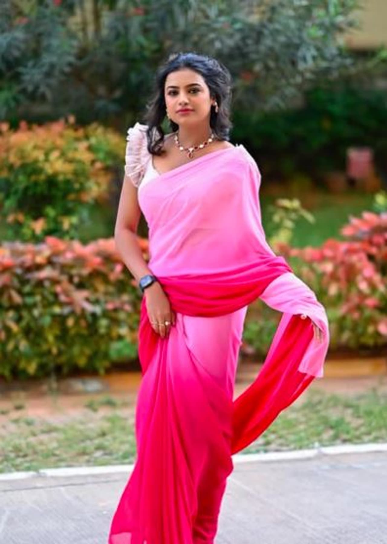 ಪಿಂಕ್ ಬಣ್ಣದ ಸೀರೆಯಲ್ಲಿ ಮಿಂಚುತ್ತಿರುವ ಸೋನು ಗೌಡ ಅದಕ್ಕೆ ಮ್ಯಾಚ್ ಆಗುವ ಕ್ರೀಮ್ ಬಣ್ಣದ ಬ್ಲೌಸ್ ಧರಿಸಿದ್ದಾರೆ. ಅಲ್ಲದೆ ಸೋನು ಮೇಕಪ್ ಮಾಡಿಕೊಂಡಿದ್ದಾಳೆ.