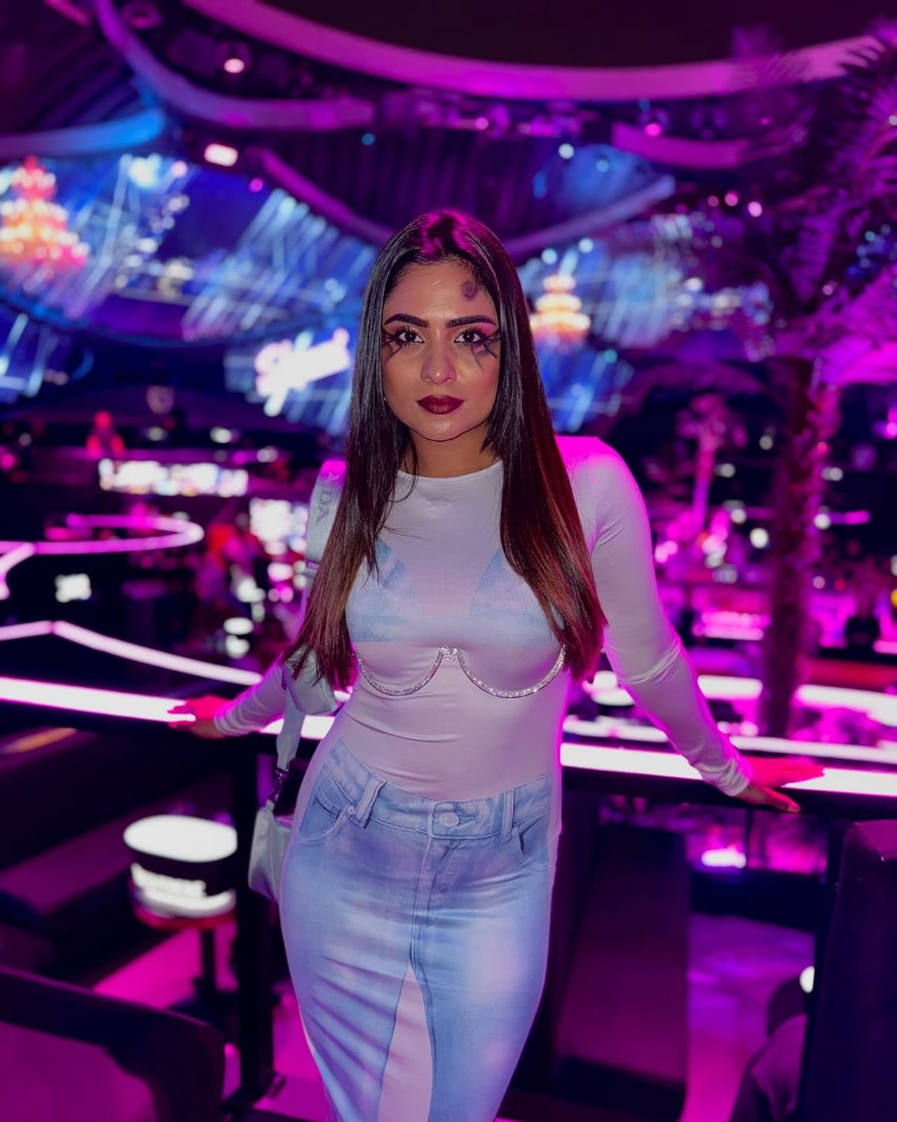 ಜೀನ್ಸ್ ಪ್ಯಾಂಟ್ ನ ಚಿತ್ರ ಇರುವಂತಹ ಬಾಡಿ ಹಗ್ಗಿಂಗ್ ಗೌನ್ ಧರಿಸಿರುವ ದೀಪಿಕಾ ದಾಸ್ ವಿಚಿತ್ರವಾಗಿ ಕಾಣಿಸುತ್ತಿದ್ದಾರೆ, ಜೊತೆಗೆ ಮುಖದ ಮೇಲೆ ಸಣ್ಣದಾಗಿ ಹಾಲೋವಿನ್ ಮೇಕಪ್ ಕೂಡ ಮಾಡಿದ್ದಾರೆ.