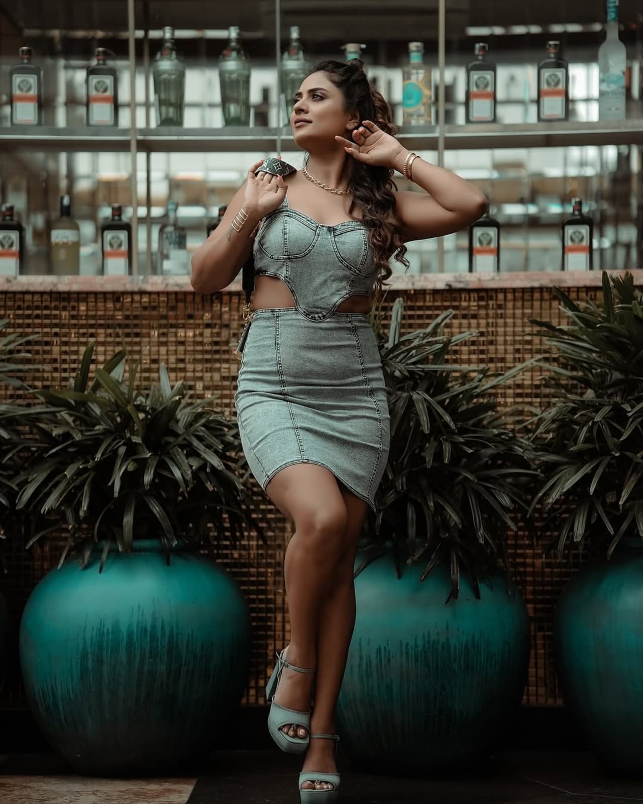 ಡೆನಿಮ್ ಕ್ರಾಪ್ ಟಾಪ್ ಡ್ರೆಸ್ ಧರಿಸಿರುವ ದೀಪಿಕಾ ದಾಸ್ Pause ….. ,a while there’s a big gap between To jump ಎಂದು ಕ್ಯಾಪ್ಶನ್ ಕೊಟ್ಟು ವಿವಿಧ ರೀತಿಯಲ್ಲಿ ಪೋಸ್ ಕೊಟ್ಟಿದ್ದಾರೆ.