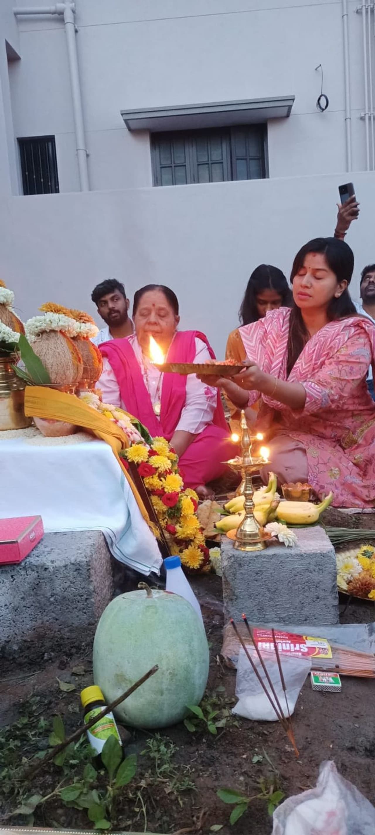 ಅನುಶ್ರೀ ತಾಯಿ ಮತ್ತು ಸಹೋದರನ ಜೊತೆ ಭೂಮಿ ಪೂಜೆ ಸಲ್ಲಿಸಿದ್ದಾರೆ. ಅನುಶ್ರೀಗೆ ಆಪ್ತರಾಗಿರು ವಸ್ತ್ರ ವಿನ್ಯಾಸಕಿ ಅಂಜಲಿ ಕುಟುಂಬ ಭಾಗಿಯಾಗಿದ್ದರು.
