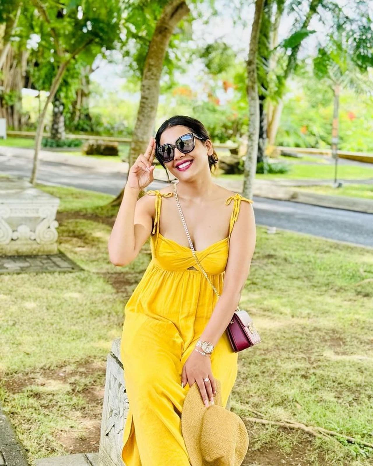 ನಟಿ ಬ್ರೈಟ್ ಹಳದಿ ಬಣ್ಣದ ಡ್ರೆಸ್ ಧರಿಸಿ ಸೂರ್ಯಕಾಂತಿಯಂತೆ ಕಂಗೊಳಿಸಿದ್ದಾರೆ. ಇದರಲ್ಲಿ ಅವರ ಆಕರ್ಷಕ ಲುಕ್ ಆಕರ್ಷಕವಾಗಿ ಕಾಣಿಸಿದ್ದು ಹಸಿರಿನ ಮಧ್ಯೆ ಸ್ಟೈಲಿಷ್ ಪೋಸ್ಗಳನ್ನು ಕೊಟ್ಟಿದ್ದಾರೆ. ನಟಿ ಕೆಂಪು ಬಣ್ಣದ ಸ್ಲಿಂಗ್ ಬ್ಯಾಗ್ ಧರಿಸಿದ್ದರು.