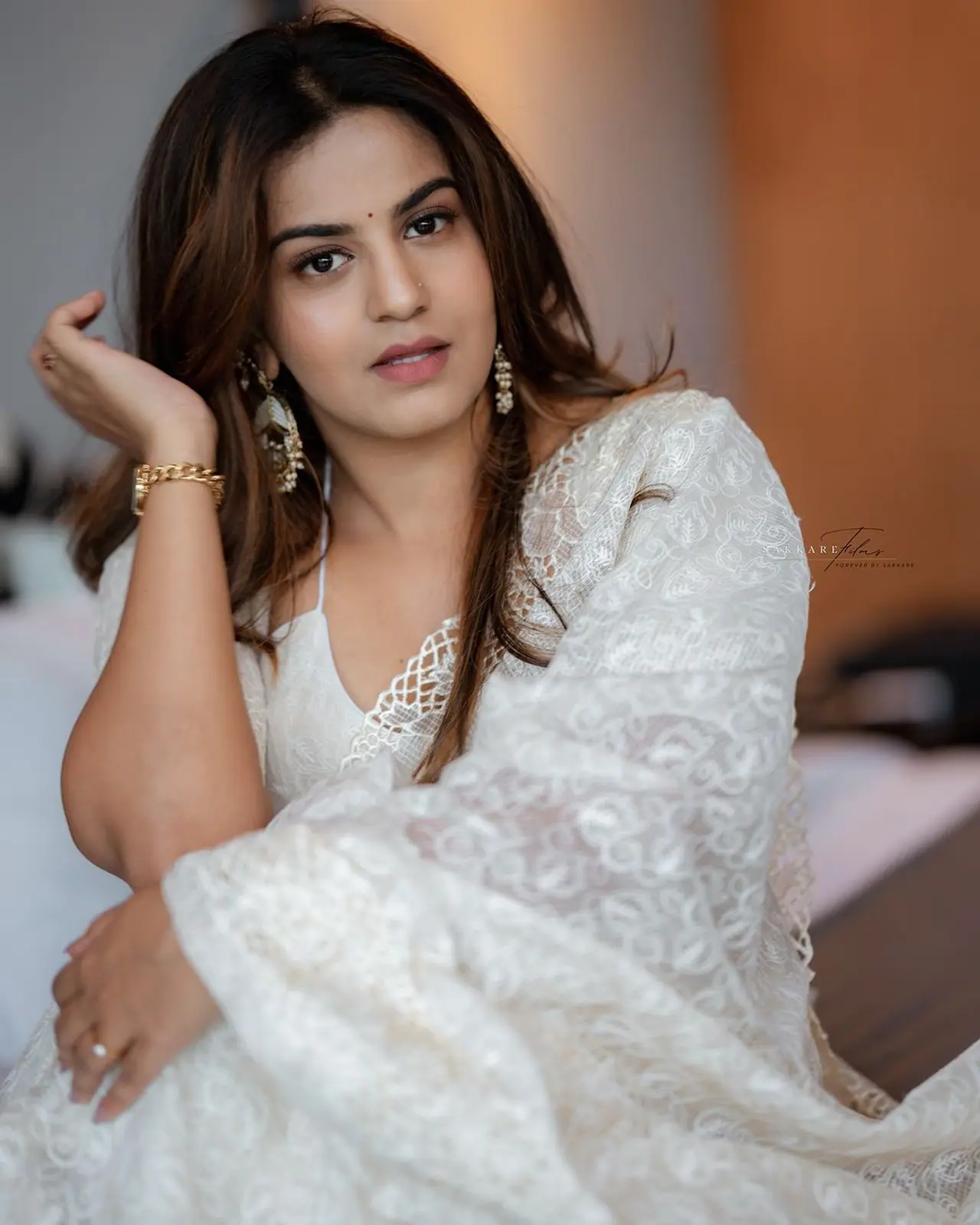 ಇದೀಗ ನಟಿ ತಮ್ಮ ಸೋಶಿಯಲ್ ಮೀಡಿಯಾದಲ್ಲಿ ಹೊಸದಾಗಿ ಬಿಳಿ ಸೀರೆಯುಟ್ಟು ಫೋಟೊ ಶೂಟ್ ಮಾಡಿ ಶೇರ್ ಮಾಡಿದ್ದು, ನೆಟೆಡ್ ಸೀರೆಯಲ್ಲಿ ನಟಿ ದೇವಲೋಕದ ಅಪ್ಸರೆಯಂತೆ ಕಾಣಿಸ್ತಿದ್ದಾರೆ.