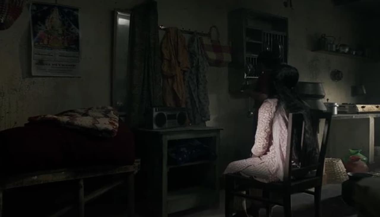 ಸ್ಲಮ್ ನಂತರ ಏರಿಯಾದಲ್ಲಿ ಒಂದು ಪುಟ್ಟ ಗುಡಿಸಲಿನಲ್ಲಿ ವಾಸಿಸುವ ಹೆಂಗಸೊಬ್ಬಳು, ತನ್ನ ಮಗಳ ಮೇಲೆ ಯಾರ ಕೆಟ್ಟ ಕಣ್ಣು ಬೀಳದಿರಲಿ ಎನ್ನುವ ಅಮ್ಮ, ಚಂದದ ಗಿಳಿಗೆ ಯಾವಾಗ್ಲೂ ಪಂಜರನೇ ಗತಿ, ನೆಮ್ಮದಿಯಾಗಿ ಹಾರಾಡೊದು ಕಾಗೆಗಳು ಮಾತ್ರ, ನಿನಗೆ ನಿನ್ನ ಸೌಂದರ್ಯನೇ ಶಾಪ ಎನ್ನುತ್ತಾ ಆಕೆಗೆ ಮುಖಕ್ಕೆ ಬಣ್ಣ ಹಚ್ಚುವ ದೃಶ್ಯ ಇದಾಗಿದೆ.
