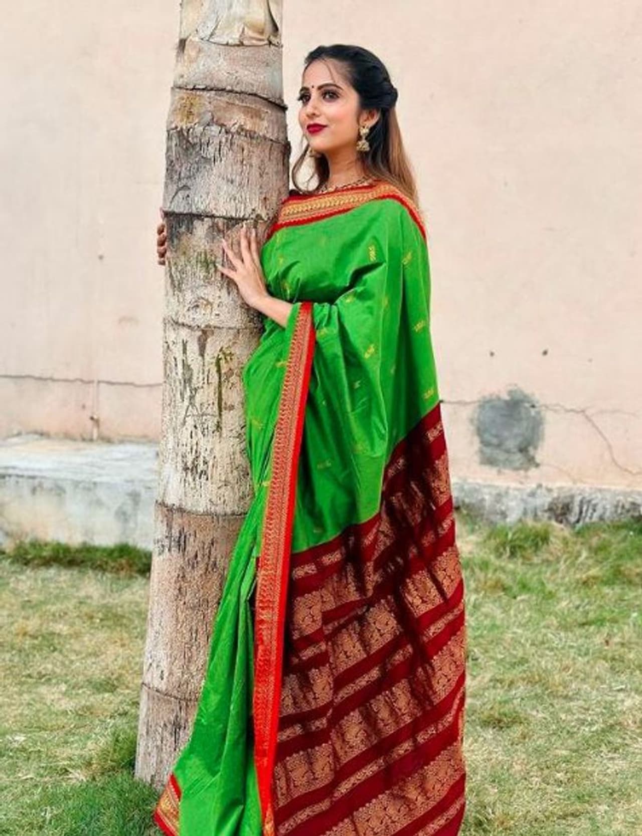 ಸೋಷಿಯಲ್ ಮೀಡಿಯಾದಲ್ಲಿ ಆಕ್ಟಿವ್ ಅಗಿರುವ ನಿವೇದಿತಾ ಗೌಡ (Niveditha Gowda) ಹಸಿರು ಬಣ್ಣದ ಸೀರೆ ಧರಿಸಿರುವ ಫೋಟೋ ಅಪ್ಲೋಡ್ ಮಾಡಿದ್ದಾರೆ.