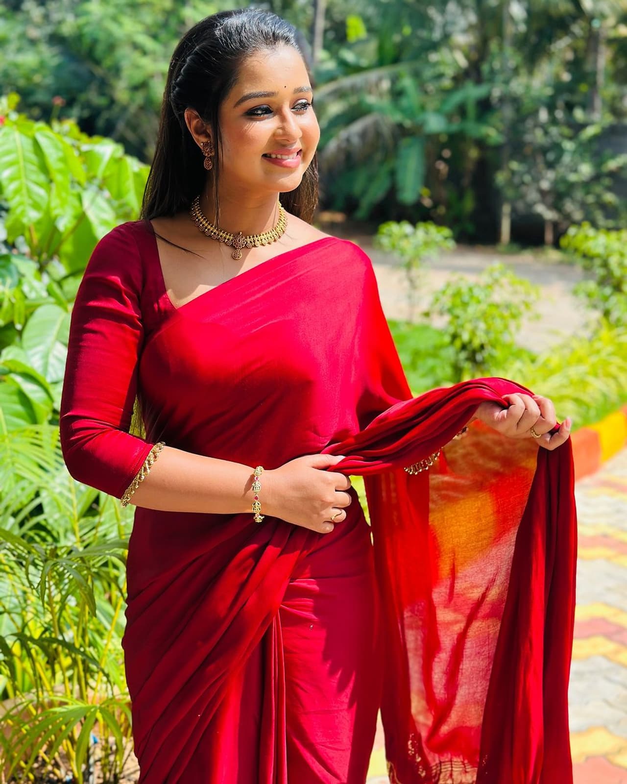 ಚಾರು ಕೆಂಪು ಸೀರೆಯುಟ್ಟು ಮುದ್ದಾಗಿ ಕಾಣಿಸುತ್ತಿದ್ದು, ಕೆಂಪು ಸೀರೆಯುಟ್ಟ ಮತ್ತೊಬ್ಬ ನಟಿಯ ಜೊತೆ ಫೋಟೊಗೆ ಪೋಸ್ ಕೊಟ್ಟಿದ್ದಾರೆ, ಅಷ್ಟೇ ಅಲ್ಲ ಯಾರು ಈ ಚೆಲುವೆ? ನಿನ್ನ ಹೆಜ್ಜೆಯಲ್ಲೇ ಚಂದ್ರನ ಮೃದು ಬೆಳಕು ಎಂದು ಕ್ಯಾಪ್ಶನ್ ಬೇರೆ ಕೊಟ್ಟಿದ್ದಾರೆ.