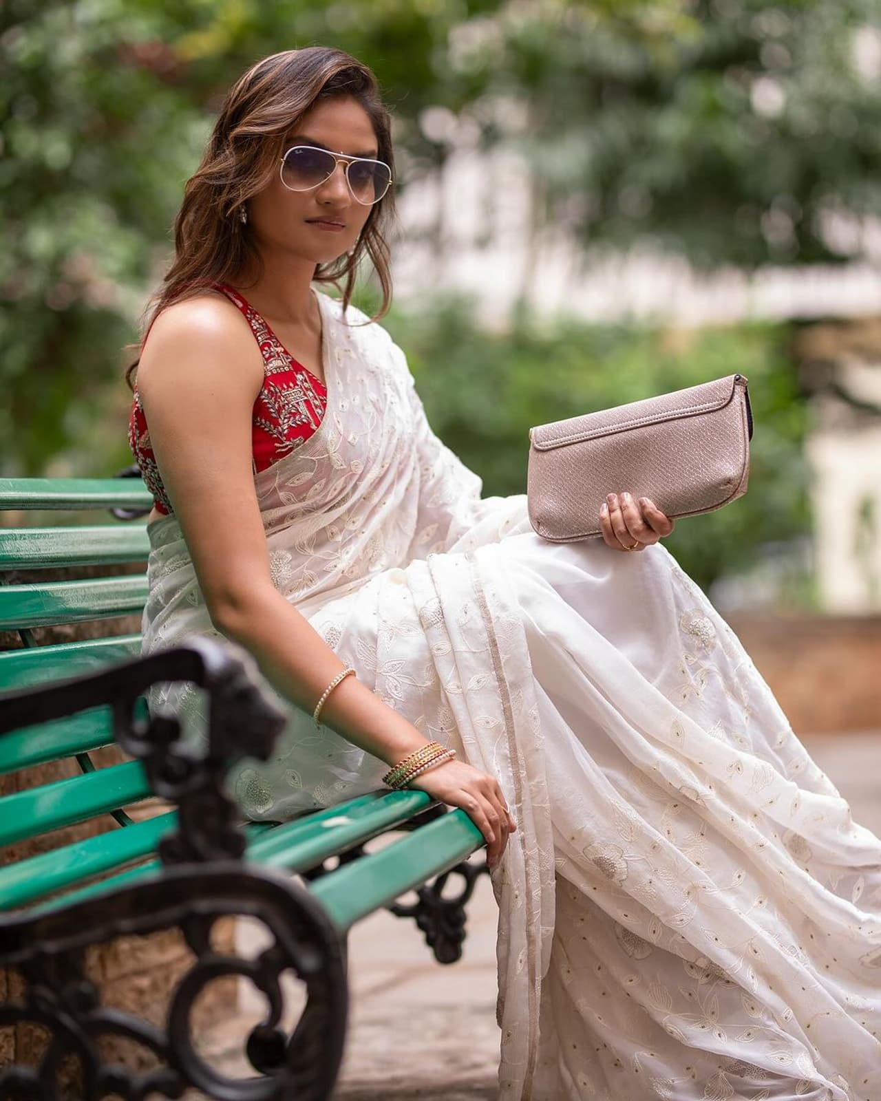 ರಂಜನಿ ಗೋಲ್ಡನ್ ಬಣ್ಣದ ಬ್ಲೌಸ್ ಹಾಗೂ ಬಾರ್ಡರ್ ಇರುವ ಕ್ರೀಂ ಬಣ್ಣದ ರೇಷ್ಮೆ ಸೀರೆ ಧರಿಸಿದ್ದಾರೆ, ಇದರ ಜೊತೆಗೆ ಮ್ಯಾಚಿಂಗ್ ಜ್ಯುವೆಲ್ಲರಿ, ಇಯರಿಂಗ್ಸ್ ಮತ್ತು ಮುಂದಾಲೆ ಧರಿಸಿದ್ದು, ಕೈ ತುಂಬಾ ಬಳೆ ಧರಿಸಿ, ಬನ್ ಹೇರ್ ಸ್ಟೈಲ್ ಮಾಡಿ, ಮುಡಿಗೆ ಮಲ್ಲಿಗೆ ಮುಡಿದಿದ್ದಾರೆ. ಈ ಲುಕ್ ನಲ್ಲಿ ನಟಿ ತುಂಬಾನೆ ಸುಂದರವಾಗಿ ಕಾಣಿಸ್ತಿದ್ದಾರೆ.