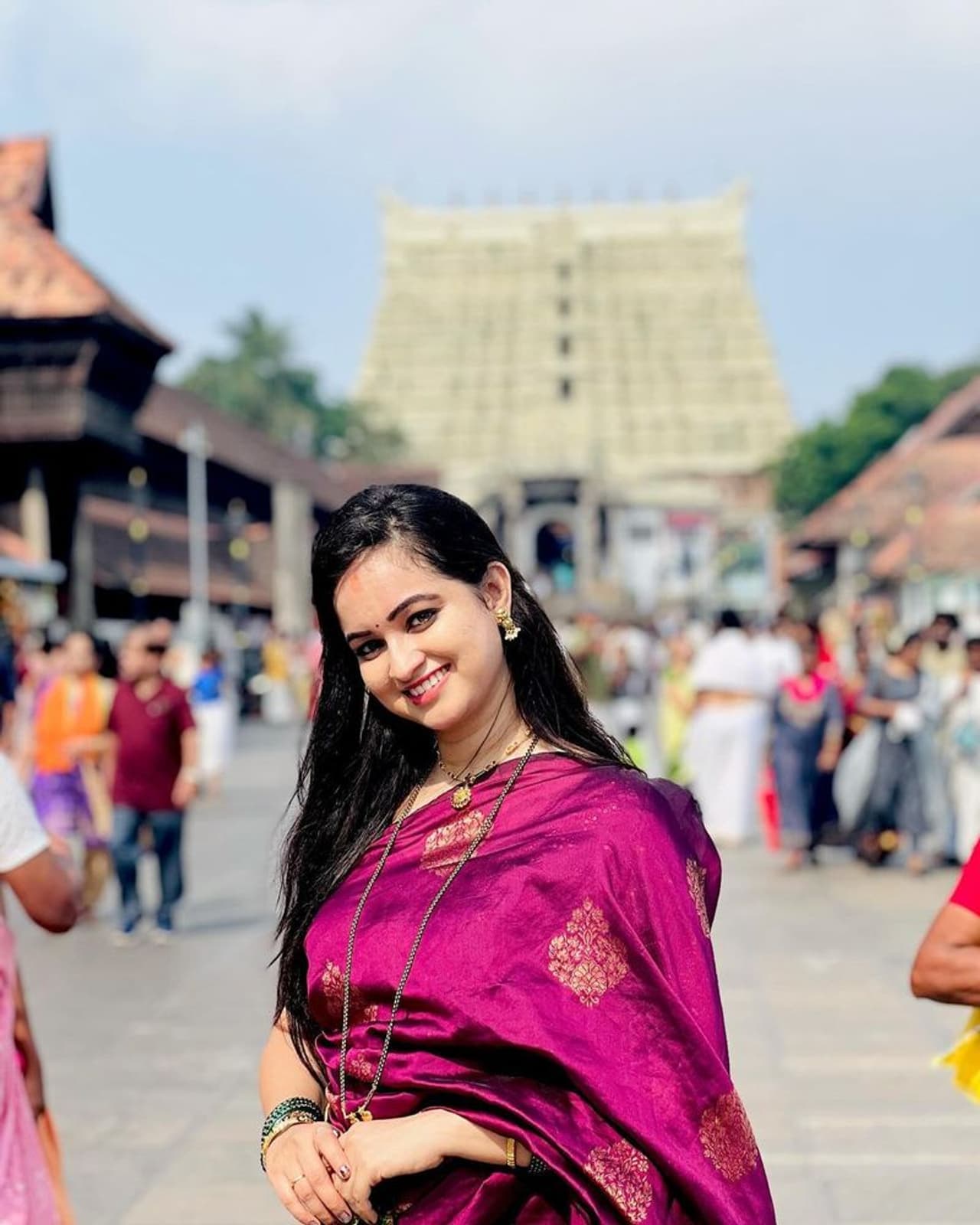 ಅವರು ಇತ್ತೀಚೆಗೆ ಕೇರಳದ ಇತಿಹಾಸ ಪ್ರಸಿದ್ಧ ದೇಗುಲವಾದ ತಿರುವನಂತಪುರದ (Tiruvanantapuram)ಅನಂತಪದ್ಮನಾಭ ಸ್ವಾಮಿ ದೇಗುಲಕ್ಕೆ ಪತಿ ಜೊತೆ ತೆರಳಿದ್ದು, ಅಲ್ಲಿ ದೇಗುಲದ ಎದುರು ತೆಗೆದಂತಹ ಫೋಟೋಗಳನ್ನು ಸೋಧಿಯಲ್ ಮೀಡಿಯಾದಲ್ಲಿ ಶೇರ್ ಮಾಡಿದ್ದರು.