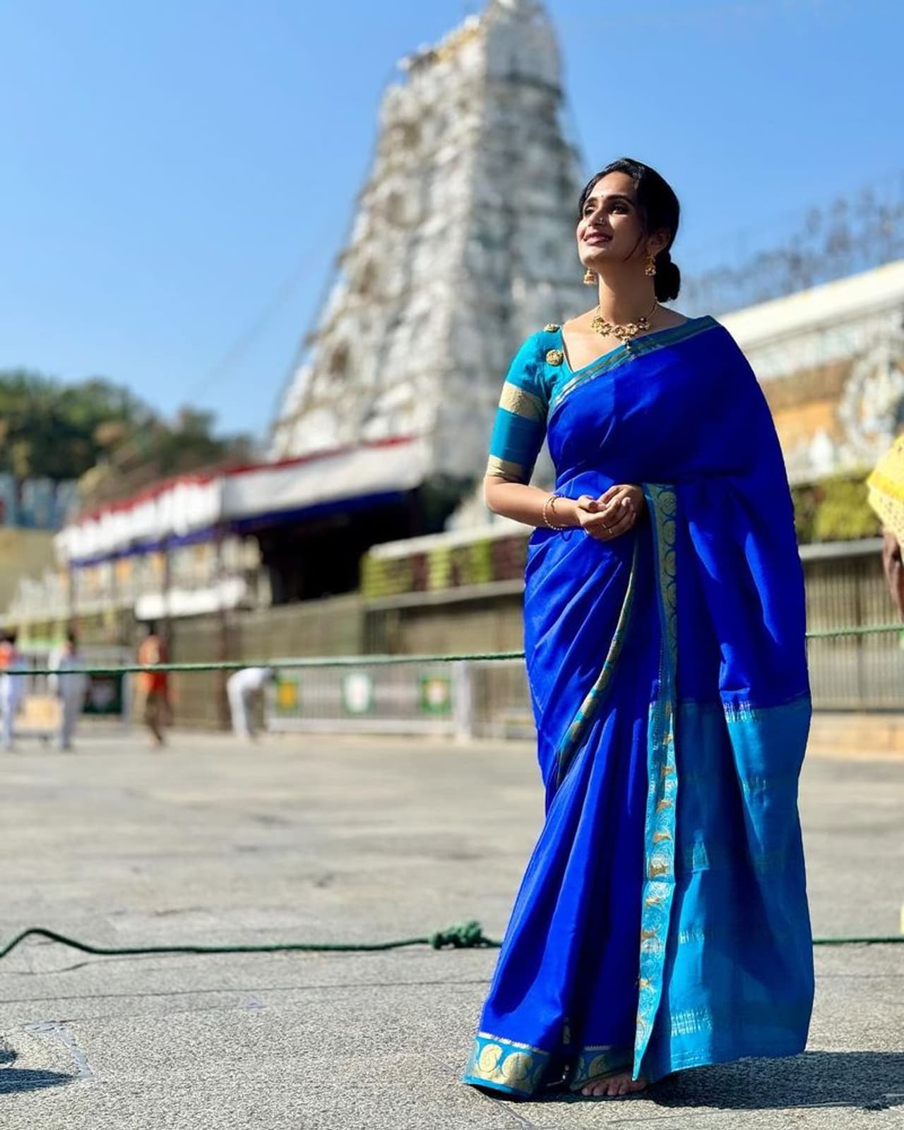 ತಿರುಪತಿ ತಿಮ್ಮಪ್ಪನ ಸನ್ನಿಧಿಯಲ್ಲಿ (Tirupathi Tirumala Temple) ನಿಂತು ಫೋಟೋ ತೆಗೆಸಿಕೊಂಡಿರುವ ಕಾವ್ಯಾ ಶಾಸ್ತ್ರಿ, ಫೋಟೋಗಳನ್ನು ತಮ್ಮ ಸೋಶಿಯಲ್ ಮೀಡಿಯಾದಲ್ಲಿ ಹಂಚಿಕೊಂಡಿದ್ದಾರೆ. ನೀಲಿ ಸೀರೆಯಲ್ಲಿ ನಟಿ ತುಂಬಾನೆ ಮುದ್ದಾಗಿ ಕಾಣಿಸುತ್ತಿದ್ದಾರೆ.