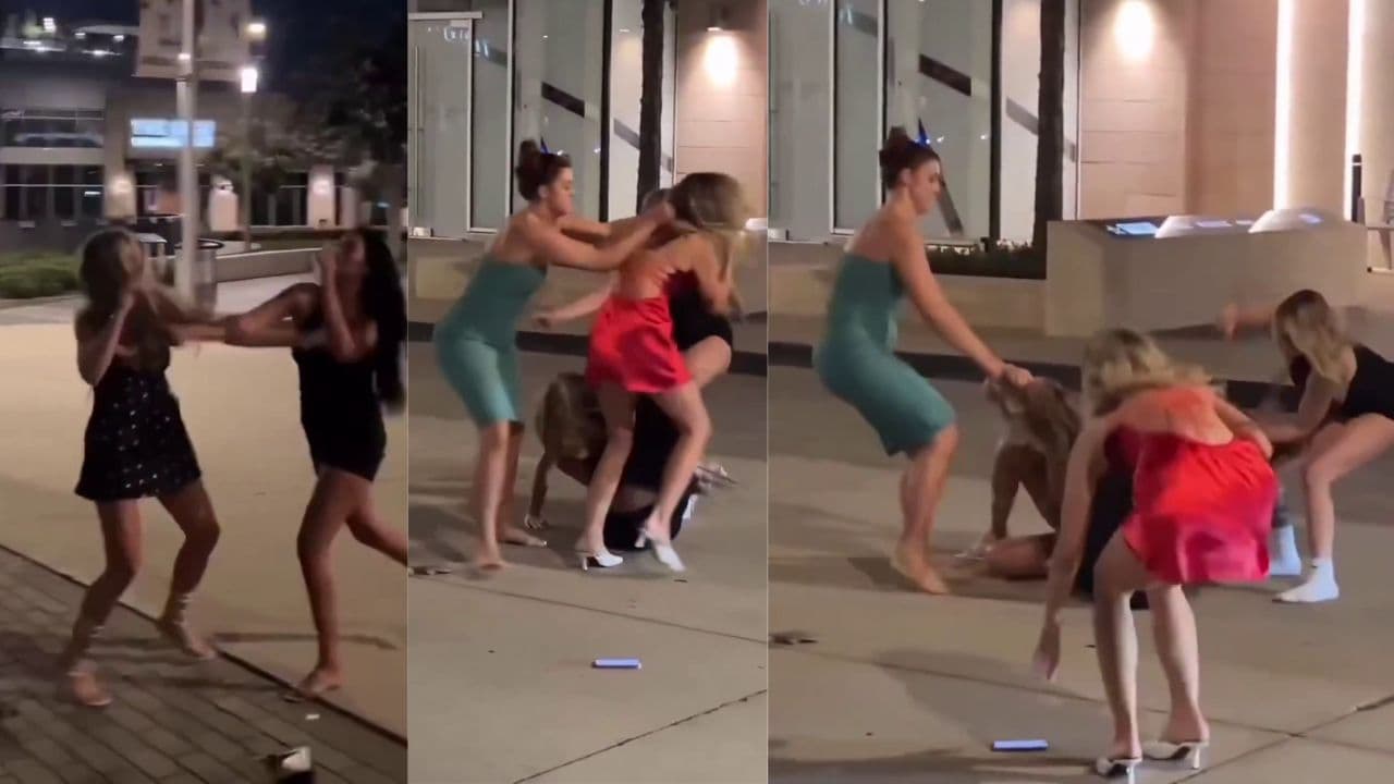 ಇಷ್ಟಕ್ಕೆ ಸುಮ್ಮನಾಗದ ಮೂವರ ಒಂದು ಗುಂಪು ಮತ್ತೆ ಆ ಯುವತಿ ಮೇಲೆ ಅಟ್ಯಾಕ್ ಮಾಡುತ್ತಾರೆ. ಮತ್ತೆ ತನ್ನ ಗೆಳತಿಯ ರಕ್ಷಣೆಗೆ ಹಸಿರು ಡ್ರೆಸ್ ಧರಿಸಿದ ಯುವತಿ, ಎಲ್ಲರನ್ನೂ ಎಳೆದು ಹಾಕುತ್ತಾಳೆ. ಈ ಜಗಳದ ವೇಳೆ ಎಲ್ಲರ ಬಟ್ಟೆಗಳು ಅಸ್ತವ್ಯಸ್ಥವಾಗಿರೋದನ್ನು ಗಮನಿಸಬಹುದು. ಕೊನೆಗೆ ಐವರ ಜಗಳ ಬಿಡಿಸಲು ಓರ್ವ ವ್ಯಕ್ತಿ ಧಾವಿಸುತ್ತಾನೆ.