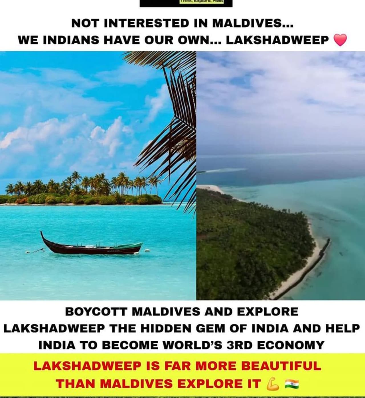 ಮಾಲ್ಡೀವ್ಸ್ ಬೈಕಾಟ್ ಮಾಡಿ, ಲಕ್ಷದ್ವೀಪ ಎಕ್ಸ್ಪ್ಲೋರ್ ಮಾಡಿ- ಏಕೆಂದರೆ ಲಕ್ಷದ್ವೀಪವು ಮಾಲ್ಡೀವ್ಸ್ಗಿಂತ ಎಷ್ಟೋ ಪಾಲು ಚೆನ್ನಾಗಿದೆ.'