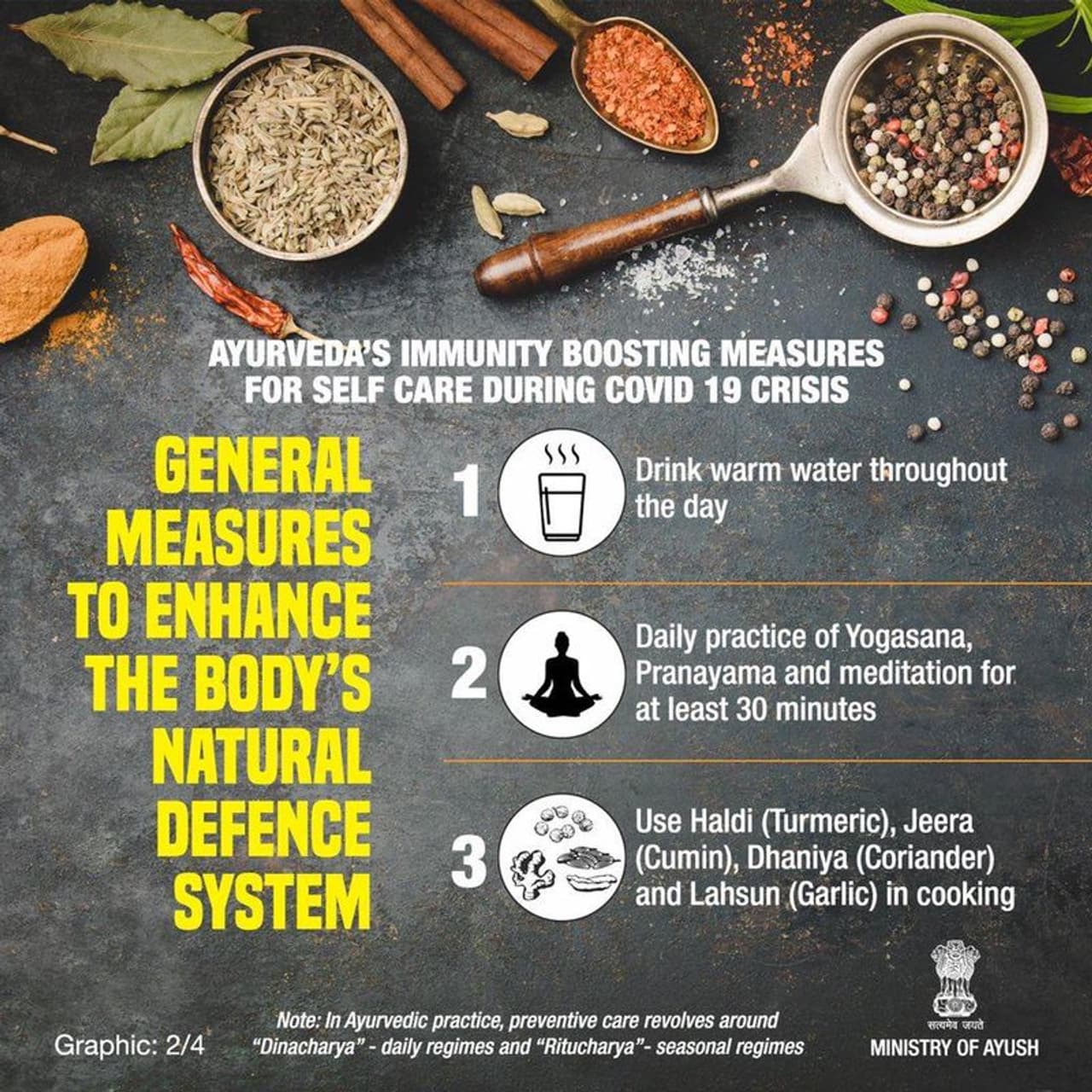 ನಮ್ಮ ಸಾಂಪ್ರದಾಯಿಕ ವೈದ್ಯ ಪದ್ಧತಿಗಳಲ್ಲಿ ದೇಹದ ರೋಗ ನಿರೋಧಕ ಶಕ್ತಿ ಹೆಚ್ಚಿಸಿ ಕೊರೋನಾ ಬಾರದಂತೆ ದೂರವಿಡಲಂತೂ ಸಾಧ್ಯವಿದೆ. ಅದು ಹೇಗೆ ಅಂತ ಆಯುಷ್ ಇಲಾಖೆ ಹೇಳಿದೆ.