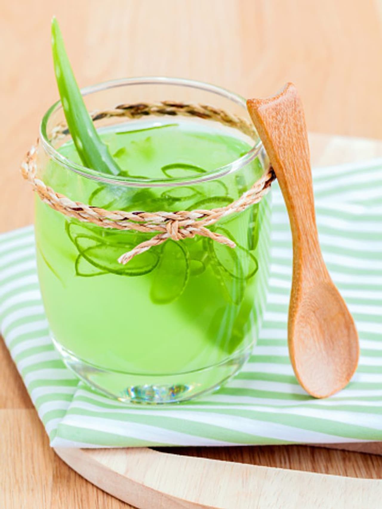 ಯಾರದರೂ ಒಂದು ಪ್ಯಾಕ್ ಅಲೊವೆರಾ ಕೊಂಡು ಜ್ಯೂಸ್ ತೆಗೆದು ಬಳಸಬಹುದು. ಇದು ಕಹಿಯಾಗಿರುತ್ತದೆ. ಅದಕ್ಕಾಗಿ ಜೇನು ಬೆರೆಸಬಹುದು. ವೇಯಿಟ್ ಲಾಸ್ಗೆ ಸುಲಭವಾಗಿ ಮಾಡಬಹುದಾಗ ಅಲೊವೆರಾ ಜ್ಯೂಸ್ ರೆಸಿಪಿ ಇಲ್ಲಿದೆ. ಬೇಕಾದ ವಸ್ತುಗಳು: ಅಲೊವೆರಾ ಜೆಲ್ - 2 ಟೇಬಲ್ ಸ್ಪೂನ್, ನಿಂಬೆ 1, ಜೇನು 1 ಟೇಬಲ್ ಸ್ಪೂನ್, ಪುದೀನ ಸ್ವಲ್ಪ.