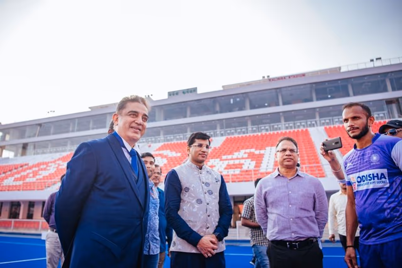 ಭುವನೇಶ್ವರ( ನ.20) : ಇಲ್ಲಿನ ಕಳಿಂಗಾ ಹಾಕಿ ಮೈದಾನಕ್ಕೆ ಮಂಗಳವಾರ ಭೇಟಿ ನೀಡಿದ ನಟ ಕಮಲ್ ಹಾಸನ್ ಭಾರತ ಪುರುಷರ ತಂಡಕ್ಕೆ ಶುಭಕೋರಿದರು.