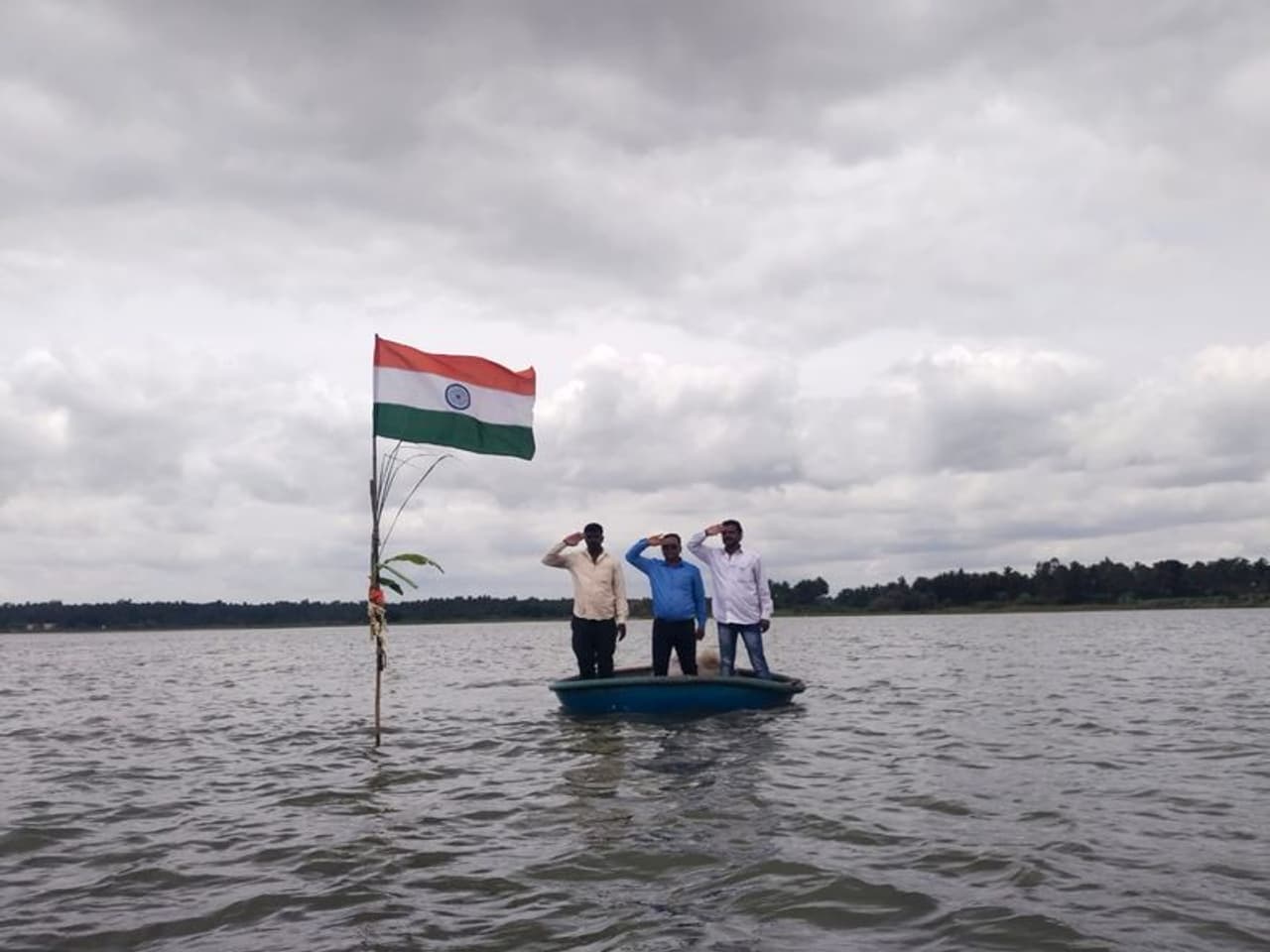 Mandya: ಕೆರೆ ಮದ್ಯೆ ಮೀನುಗಾರರಿಂದ ಧ್ವಜಾರೋಹಣ